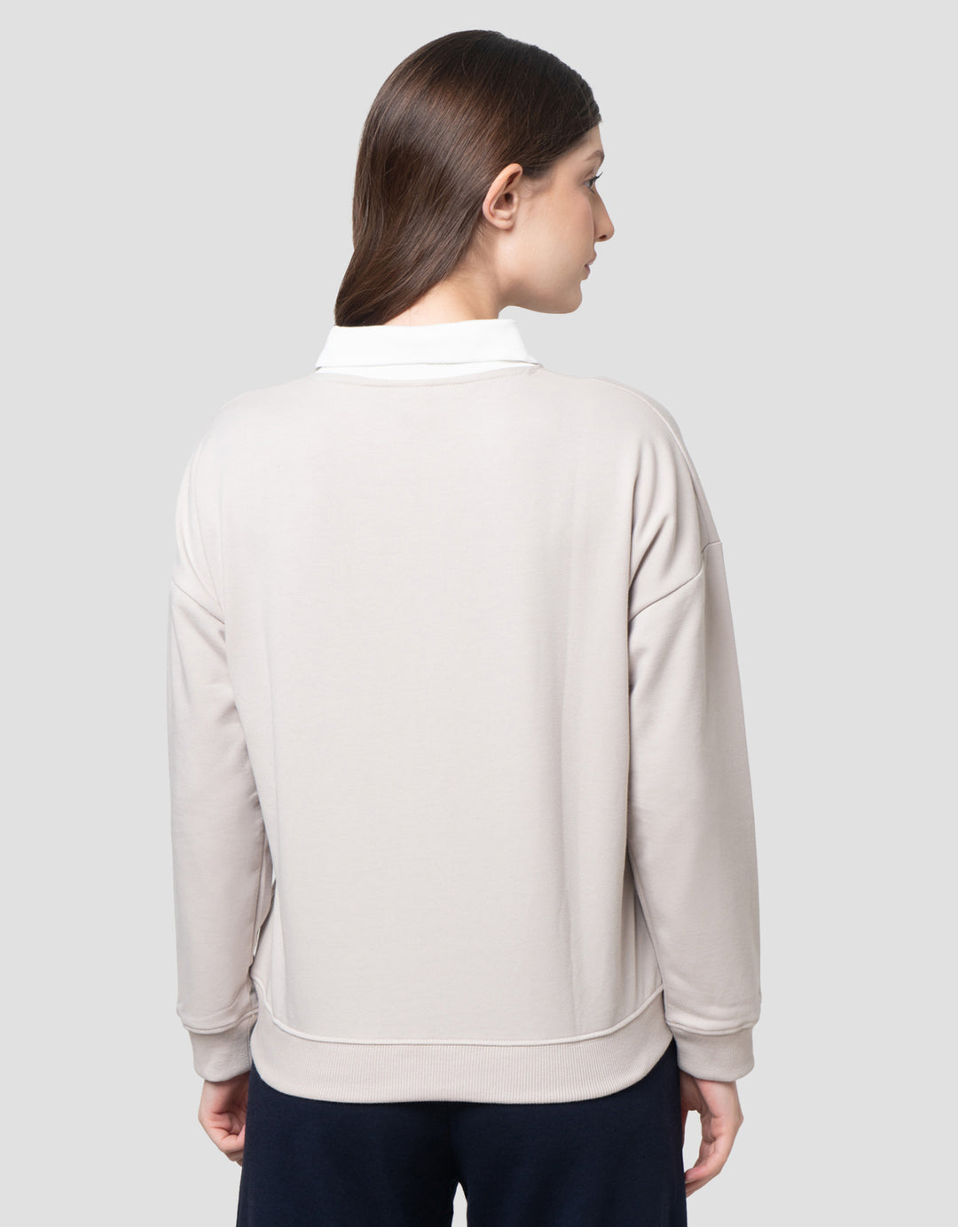 Sweater wanita dengan model yang casual dan simple serta detail print yang berkualitas, cocok untuk Anda gunakan pada moment keseharian menemani saat santai Anda.