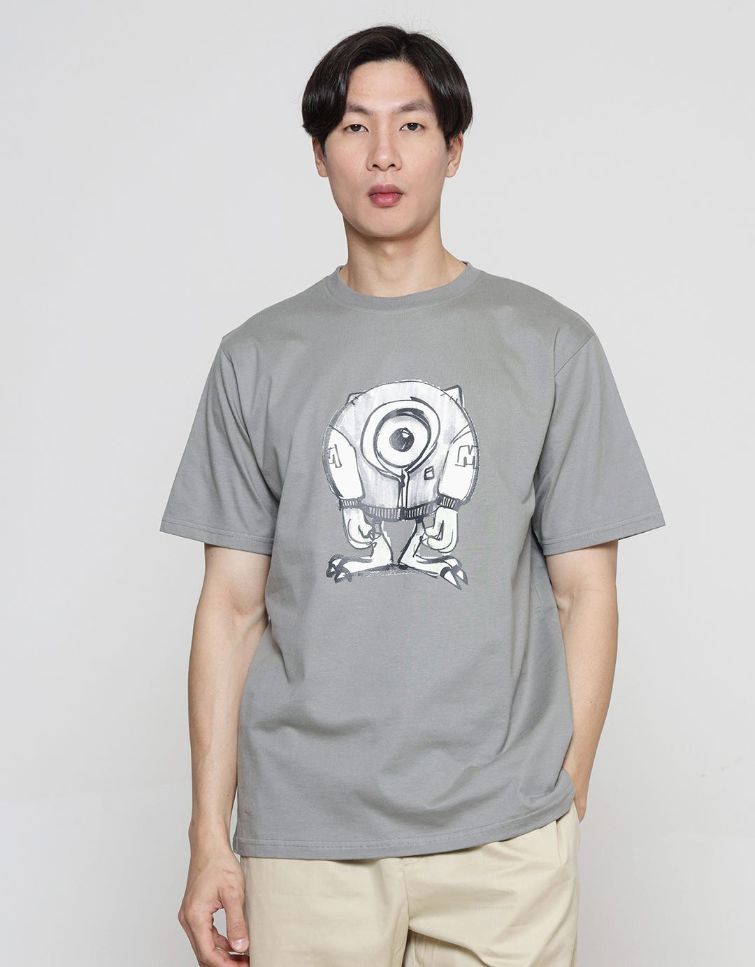 - Detail kerah bulat, lengan pendek