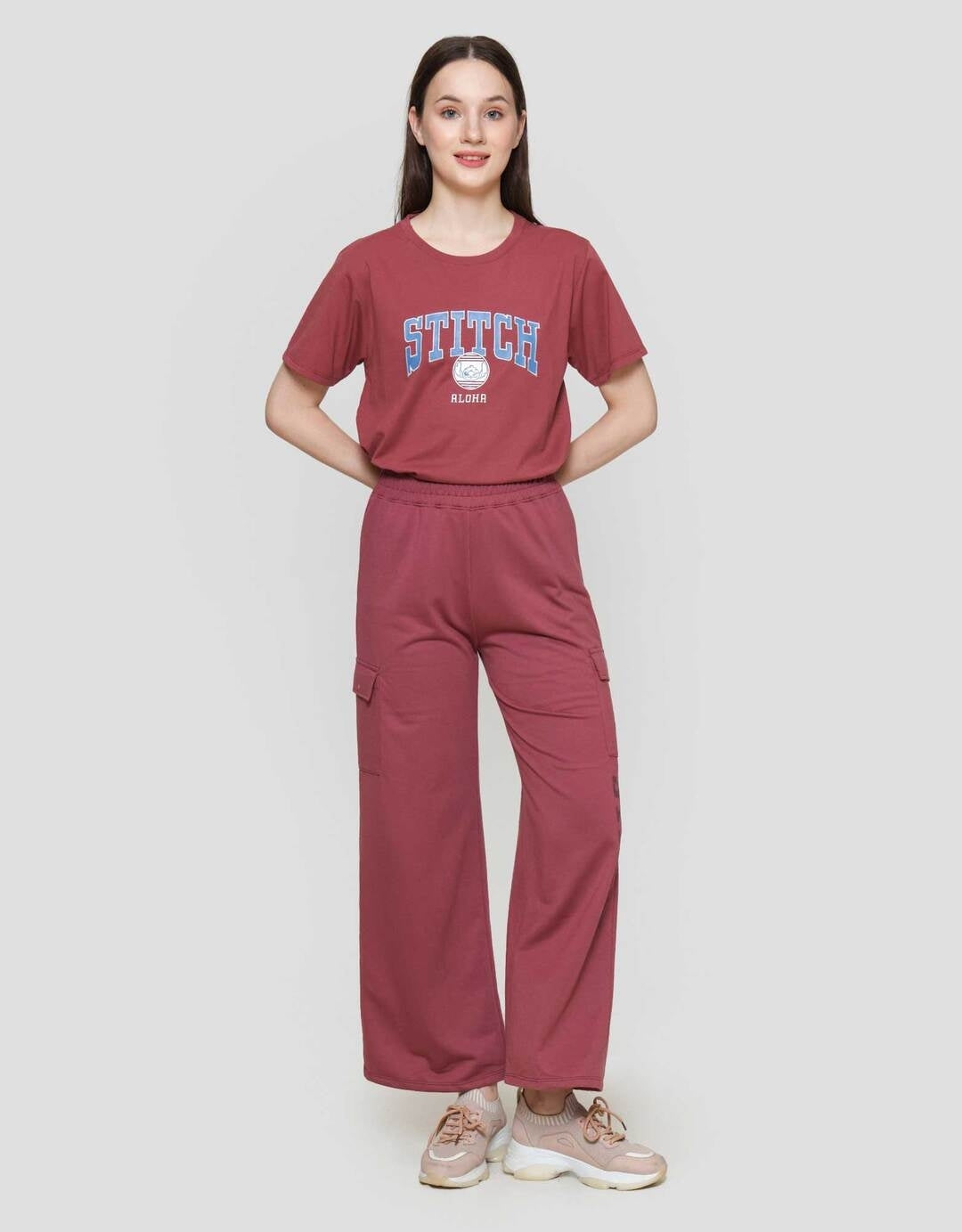 Disney Print Stitch Celana Cargo Wanita