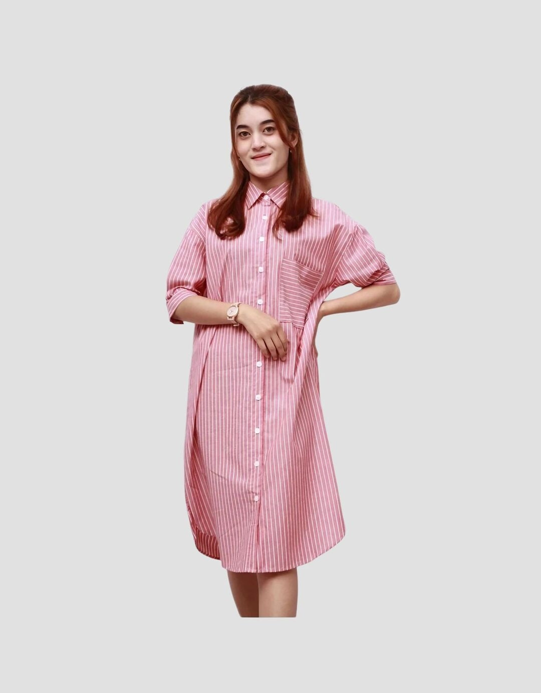 Bahan Dress Y/D Salur-Salur Col. Red, Bw