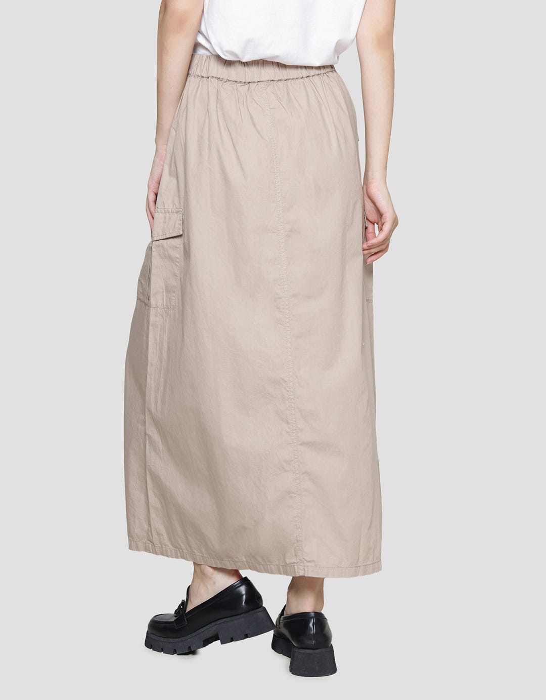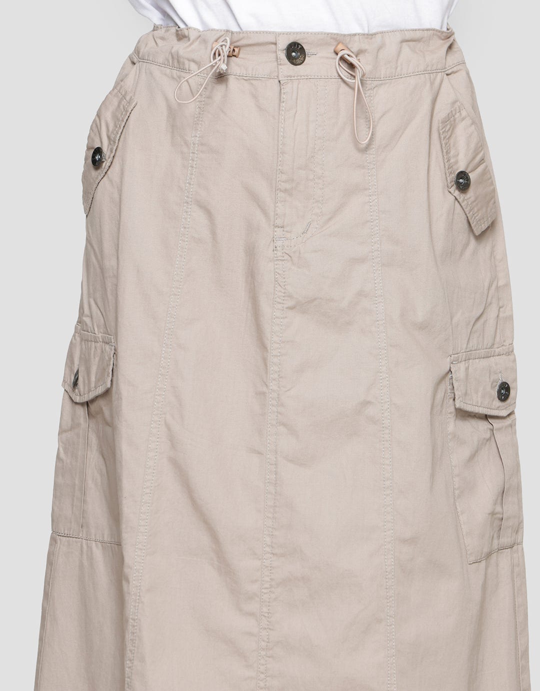 - Detail stopper, karet pinggang, kancing dan ritsleting depan