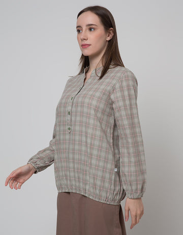 Blouse wanita dengan design yang simple dan casual, cocok untuk dijadikan outfit keseharian saat bepergian. Bahan yang berkualitas akan nyaman saat digunakan sepanjang hari.