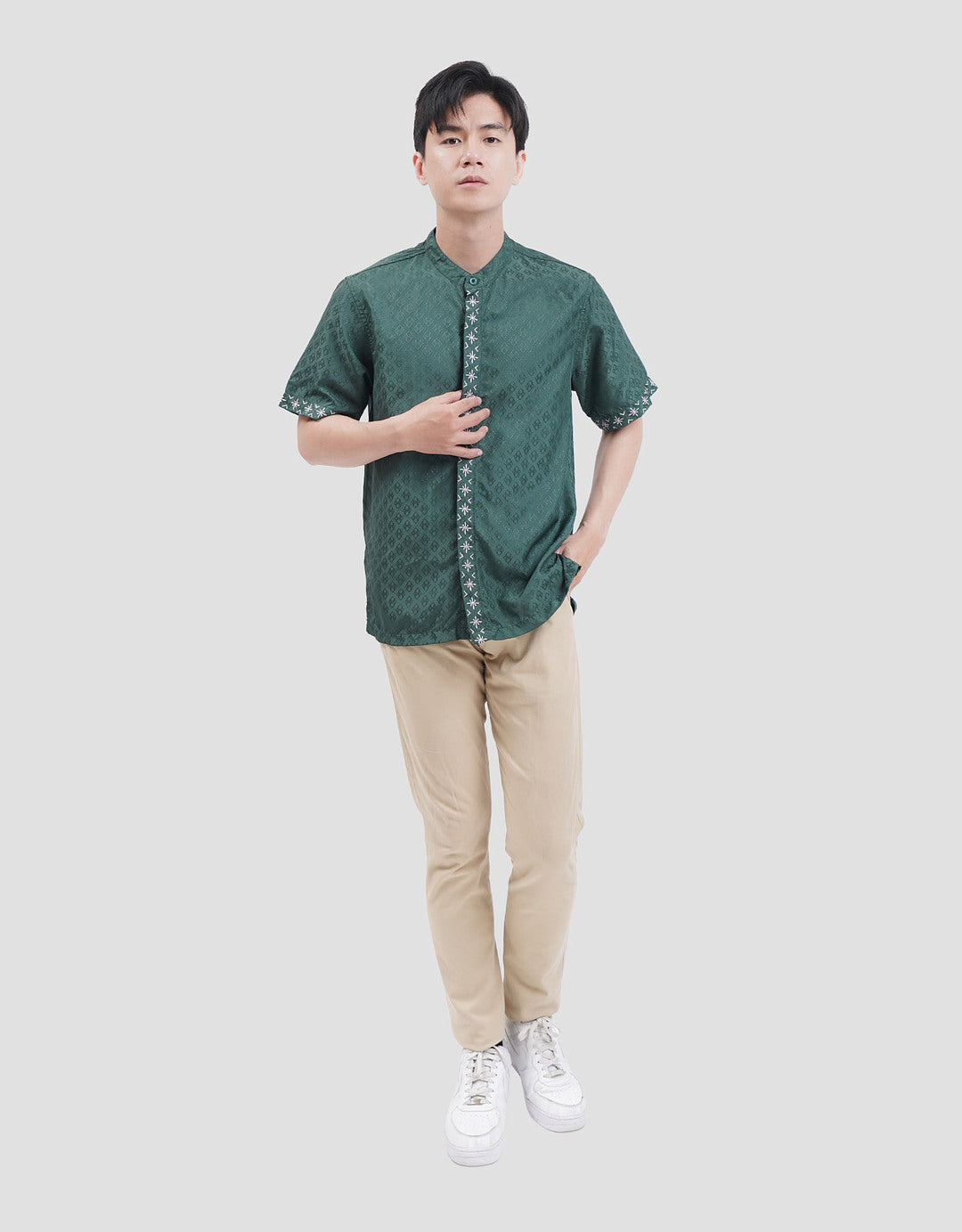 Baju koko pria dengan design simple dan ornamen yang memukau, cocok untuk digunakan saat moment casual keseharian. Design yang trendy dan warna yang simple, dapat dipadankan dengan bawahan favorit Anda.