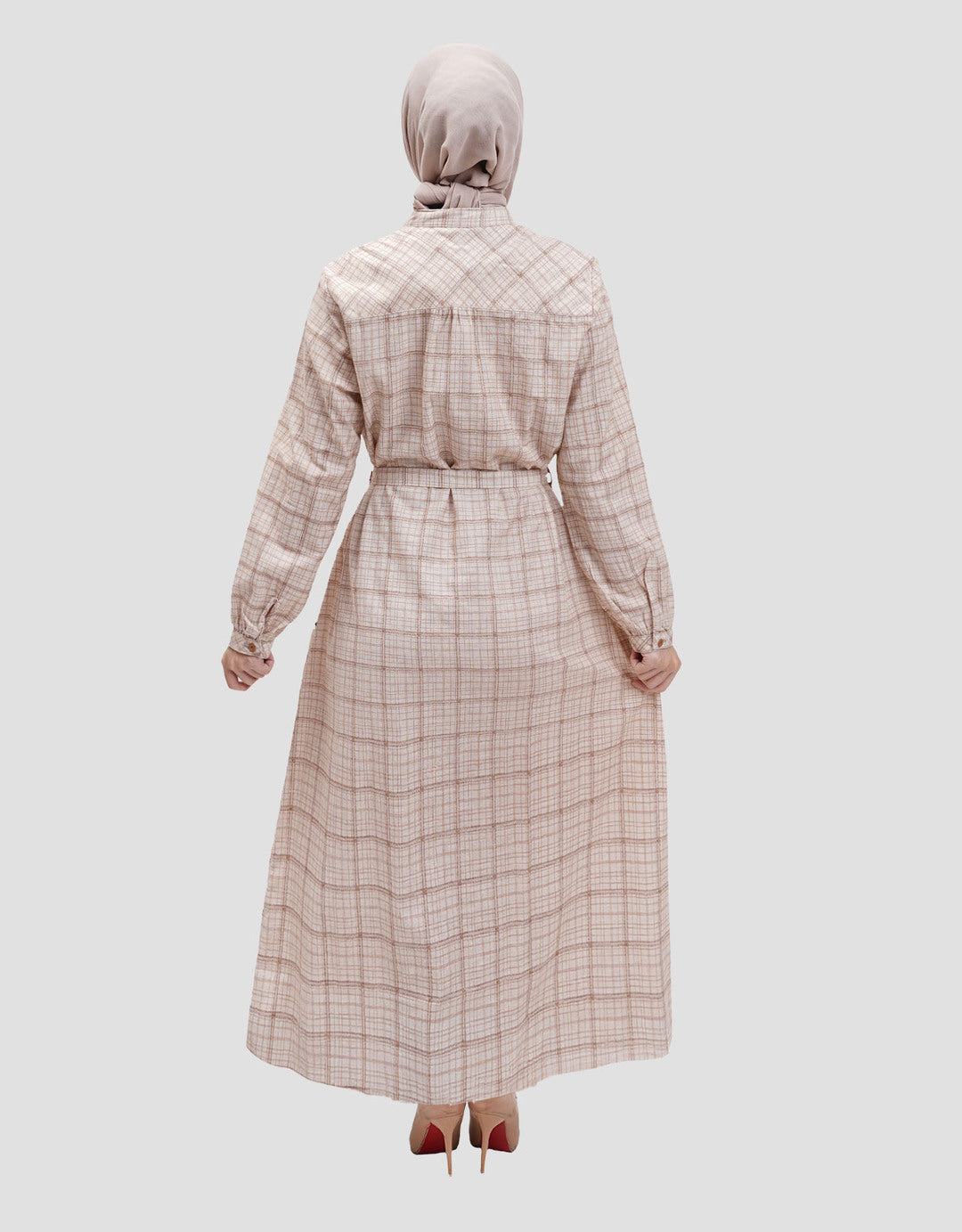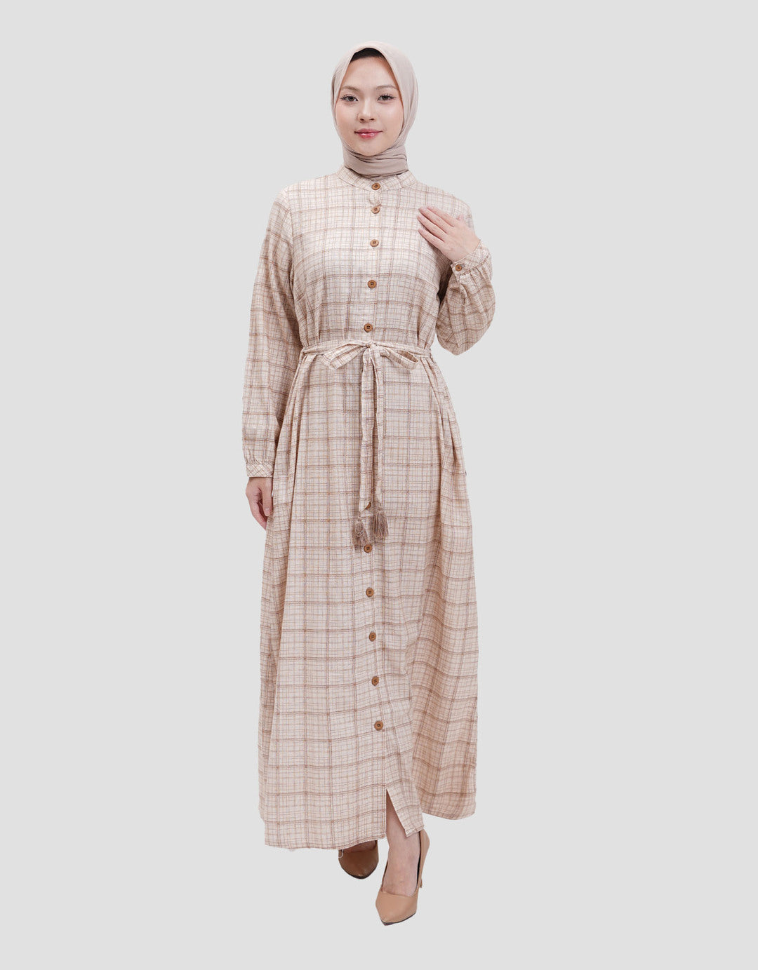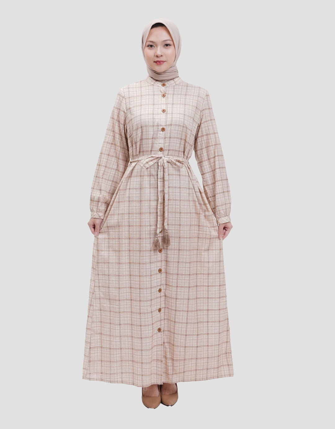 Dress bernuansa soft dengan desain yang feminim dan cantik. Dilengkapi detail kerah tinggi dengan tali ikat pinggang yang adjustable. Desain lengan panjang dan motif kotak yang menawan, memberikan gaya terbaik setiap saat.
