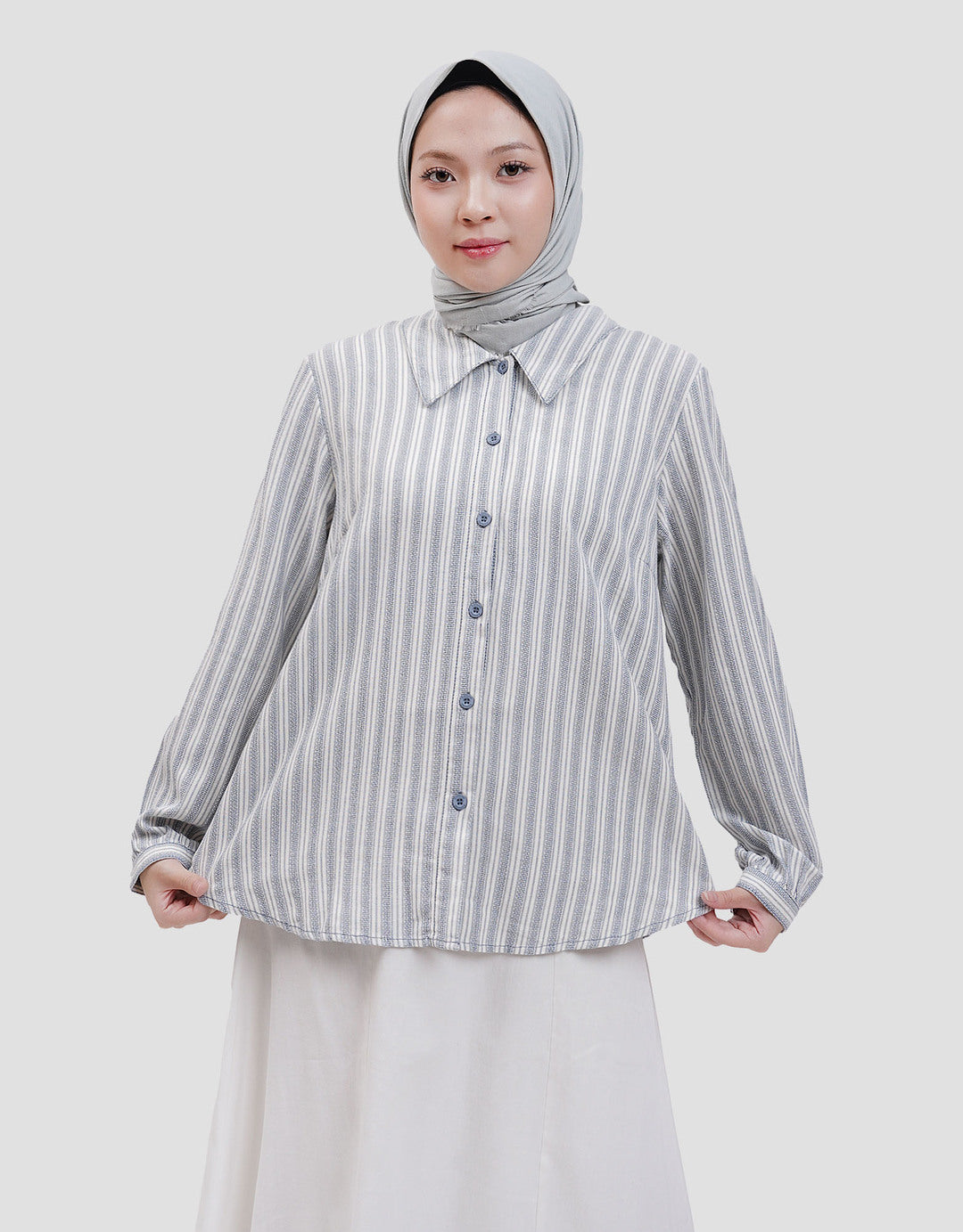 Kemeja modis dan penuh gaya menghadirkan tampilan memukau setiap saat. Motif garis-garis dengan potongan asimetris yang eye-catching. Sentuhan material kombinasi katun dan poliester yang ringan dan nyaman dipakai.