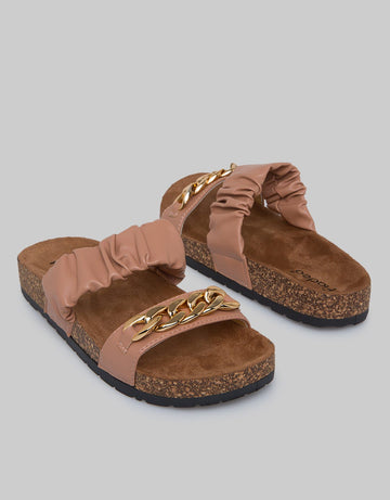 Fladeo Chain Gold Detail Sandal Slide Wanita