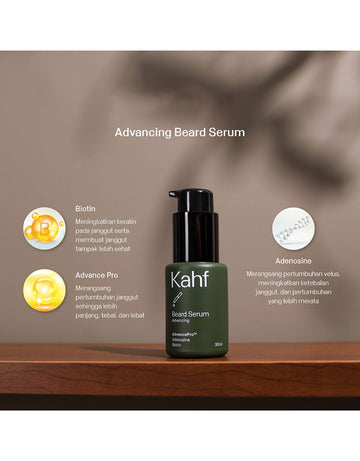 Kahf Advancing Beard Serum merupakan serum janggut dengan kandungan AdvancePro yang mampu menstimulus pertumbuhan janggut sehingga lebih panjang, lebih tebal, dan lebih lebat. Diperkaya dengan Adenosine dan Biotin yang membuat pertumbuhan velus dan janggut lebih tebal sehingga tidak mudah rontok.