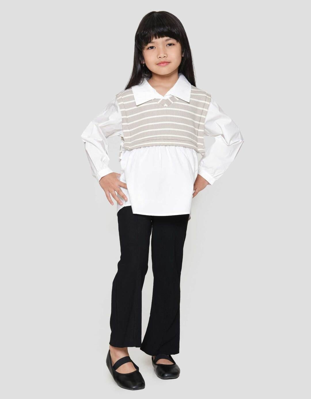 Little M 2In1 Vest Stripe Kemeja Anak Perempuan