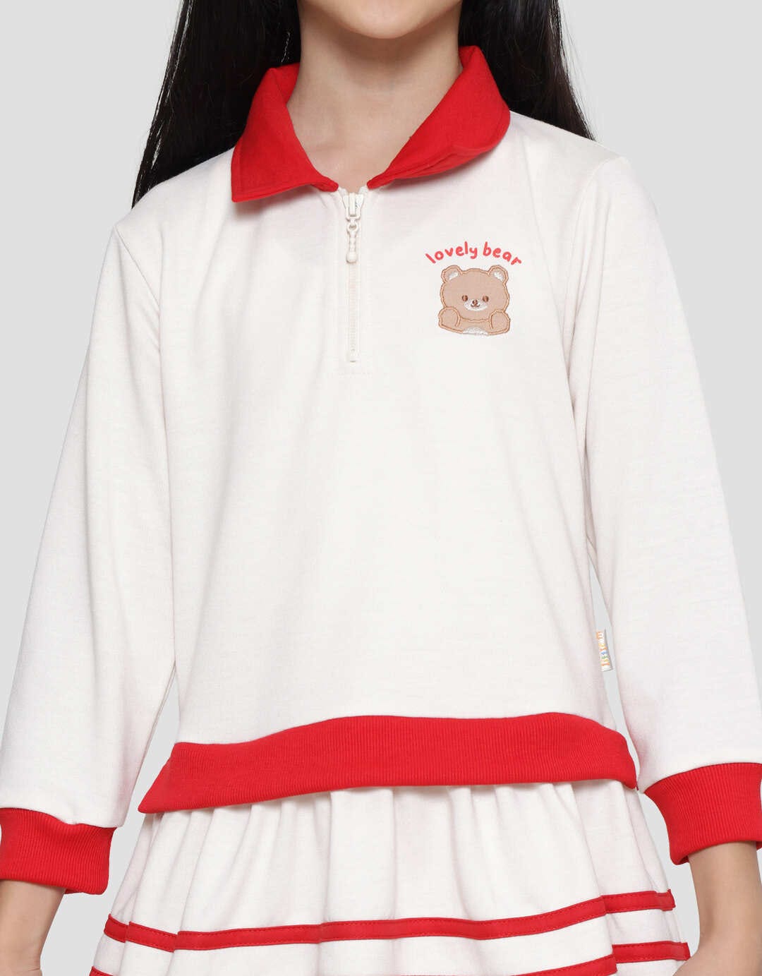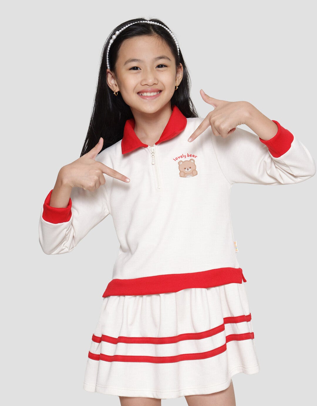Little M Aplikasi Bear Midi Dress Kerah Anak Perempuan