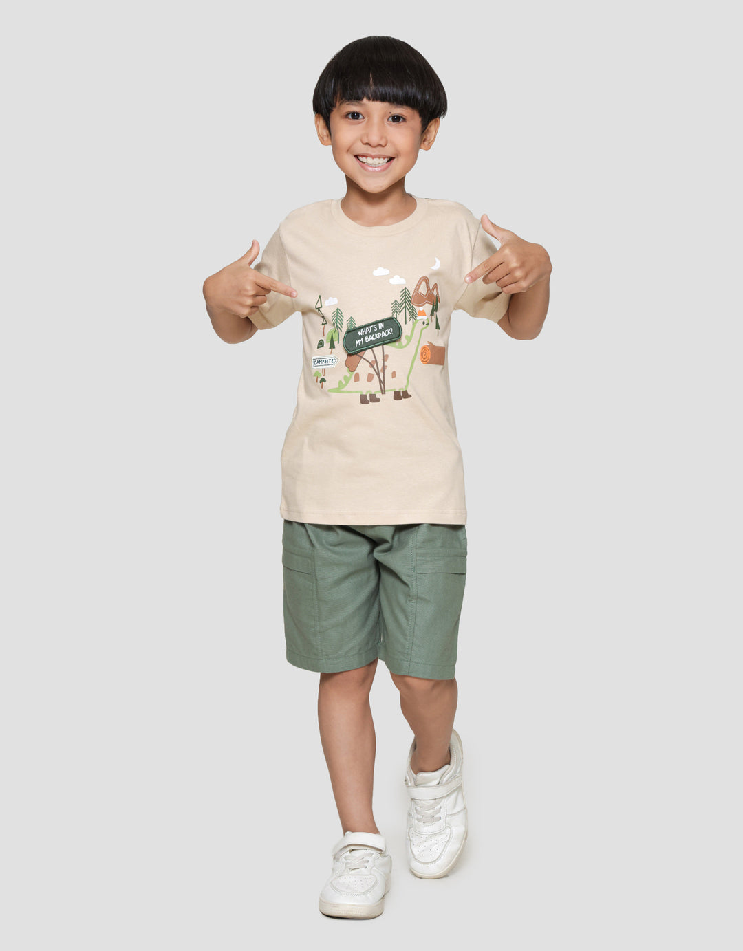 Little M Aplikasi Campsite Kaos Lengan Pendek Anak Laki-laki