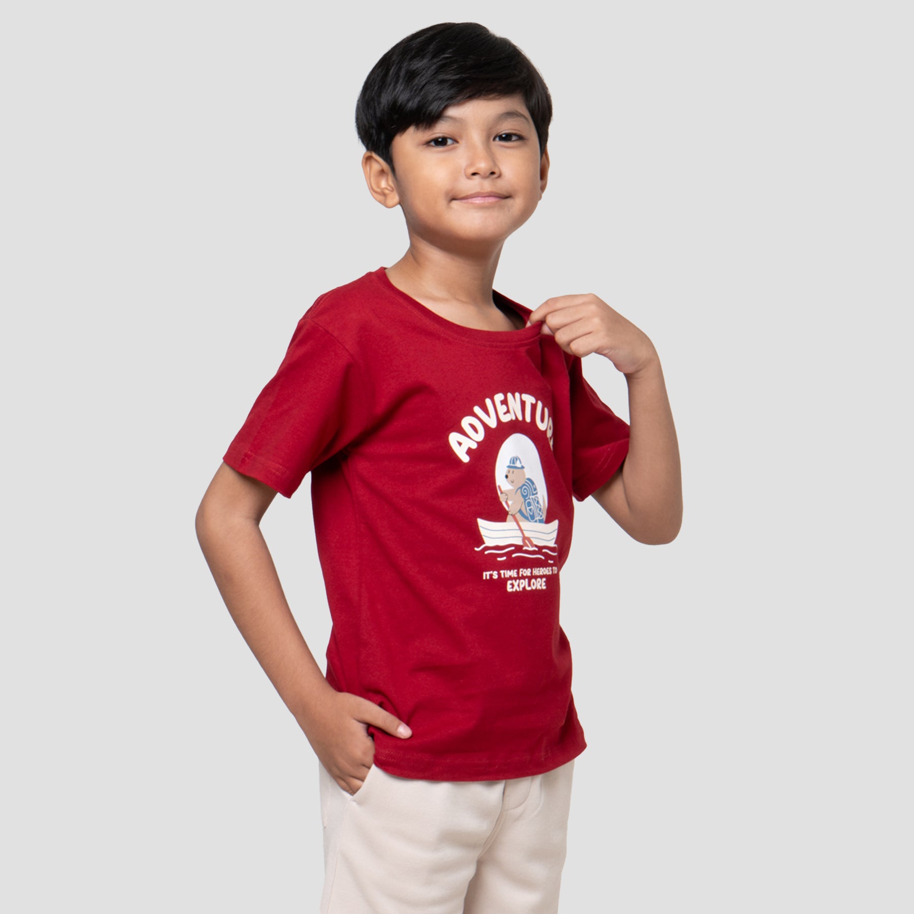 Kaos anak laki-laki dengan design yang simple dan casual, cocok untuk digunakan anak pada moment berharga mereka untuk menunjang penampilan anak menjadi lebih menawan.
