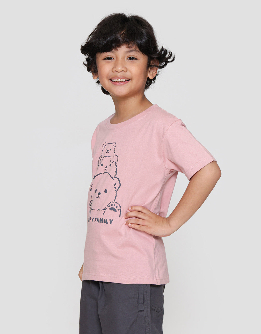 Kaos anak laki-laki dengan design yang simple dan casual, cocok untuk digunakan anak pada moment berharga mereka untuk menunjang penampilan anak menjadi lebih menawan.