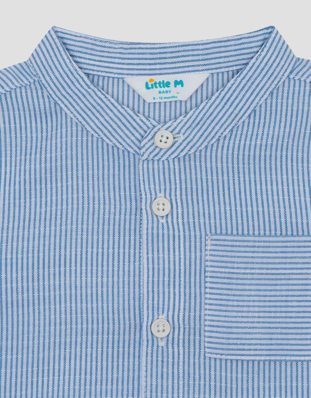 Little M Casual Yarndyed Salur Biru Kemeja Koko Bayi