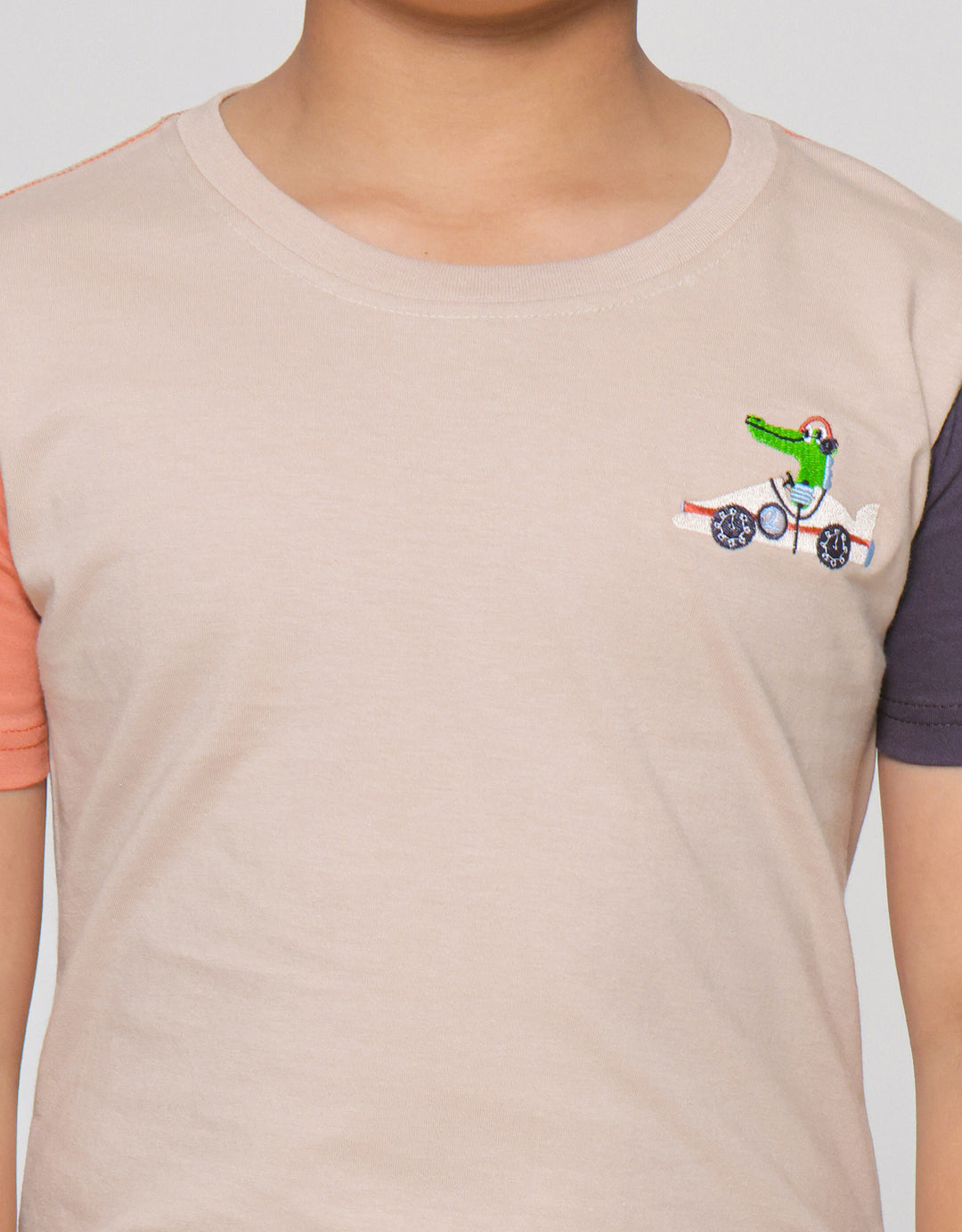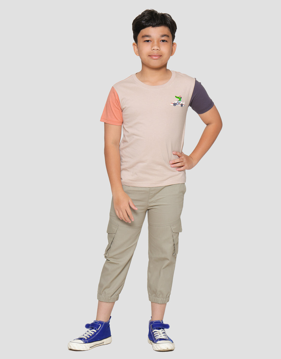 Little M Color Block Sleeve Embro Dino Kaos Anak Laki-Laki