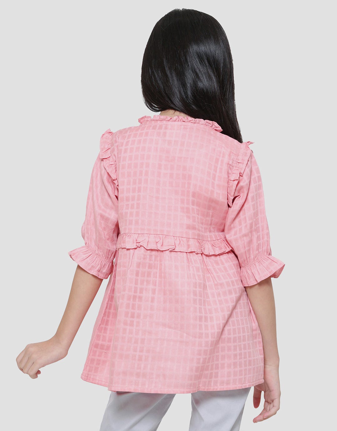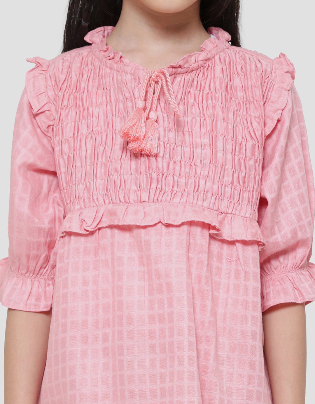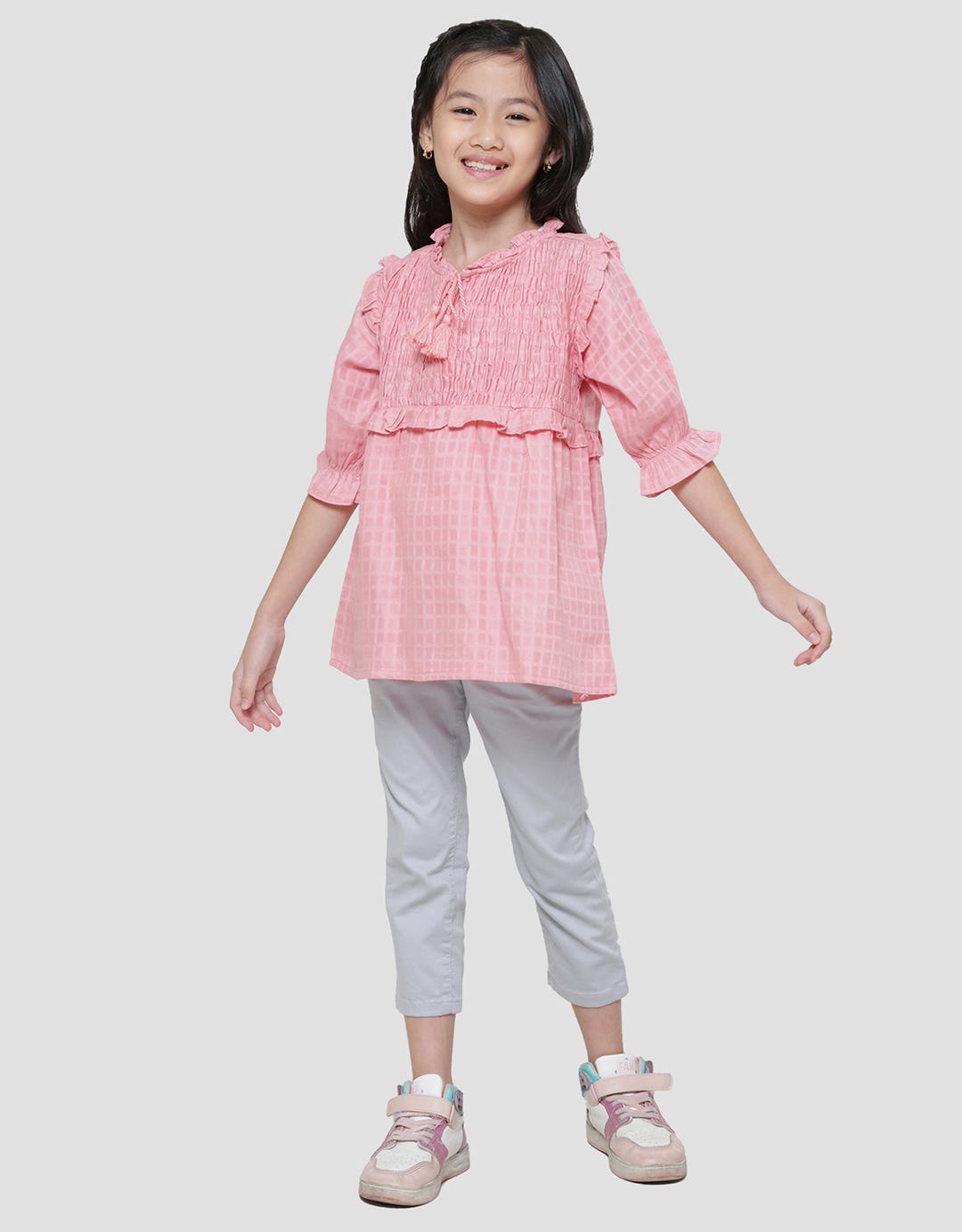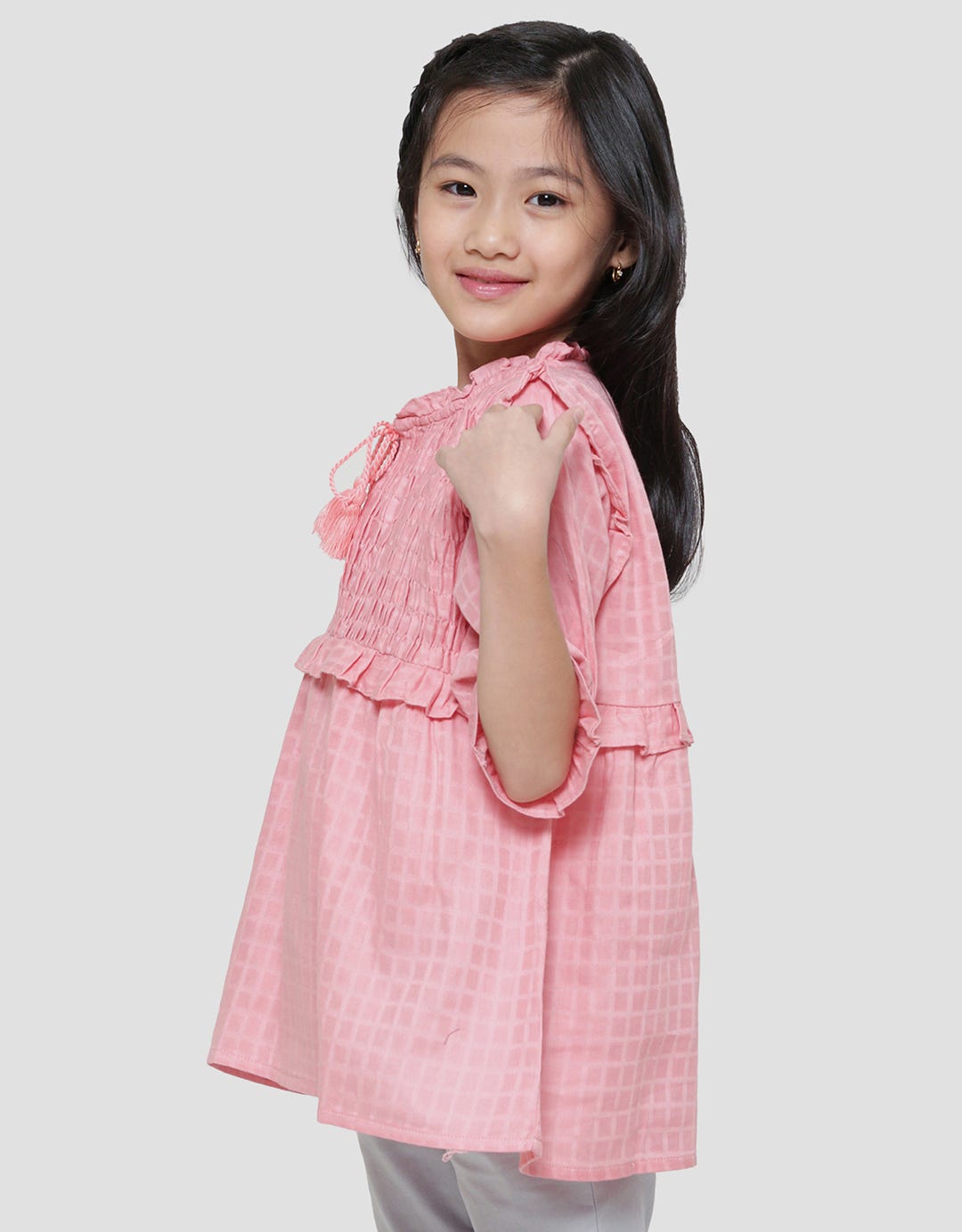 Little M Dada Smok Ruffle Tassel Kemeja Blouse Anak Perempuan