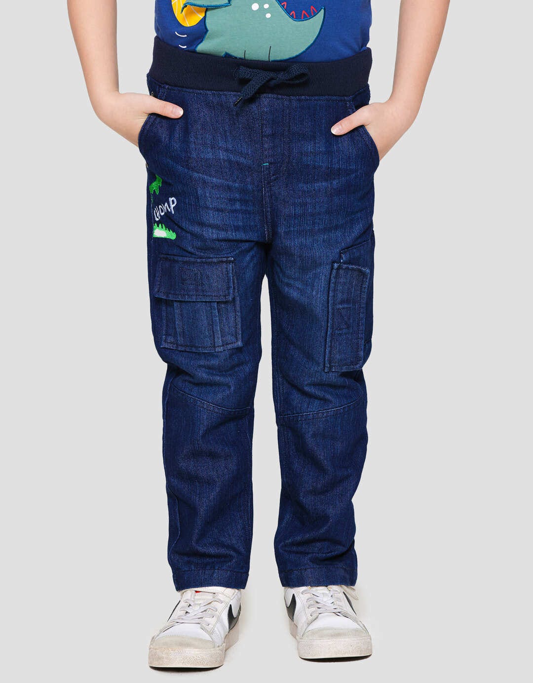 Little M Denim Croco Pinggang Rib Celana Panjang Anak Laki-Laki