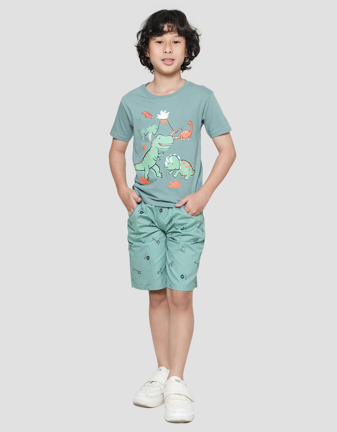 Little M Dino Gunung Kaos Lengan Pendek Anak Laki-Laki