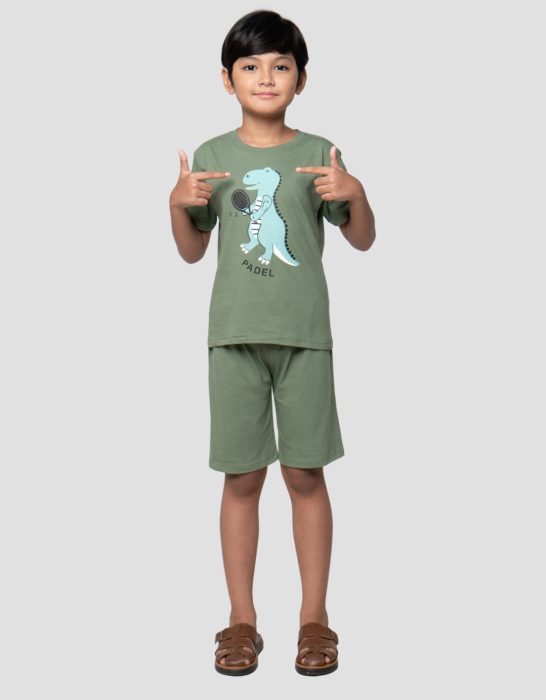 Little M Dino Padel Pakaian Setelan Anak Laki-laki