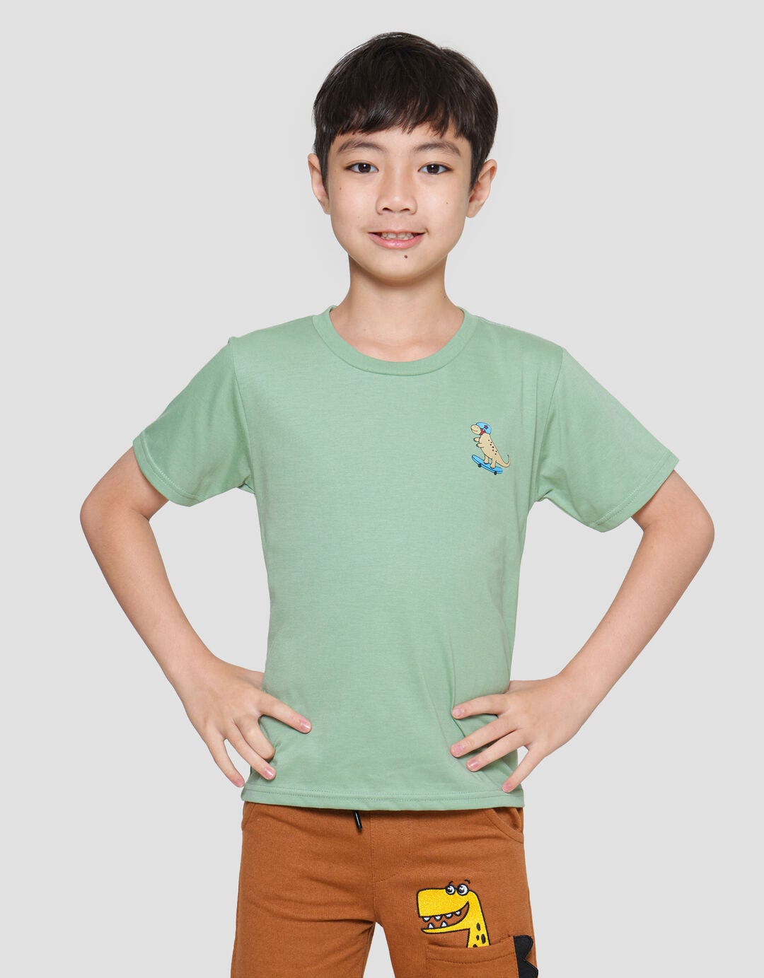 Little M Dino Skate Print Kaos Lengan Pendek Anak Laki-laki