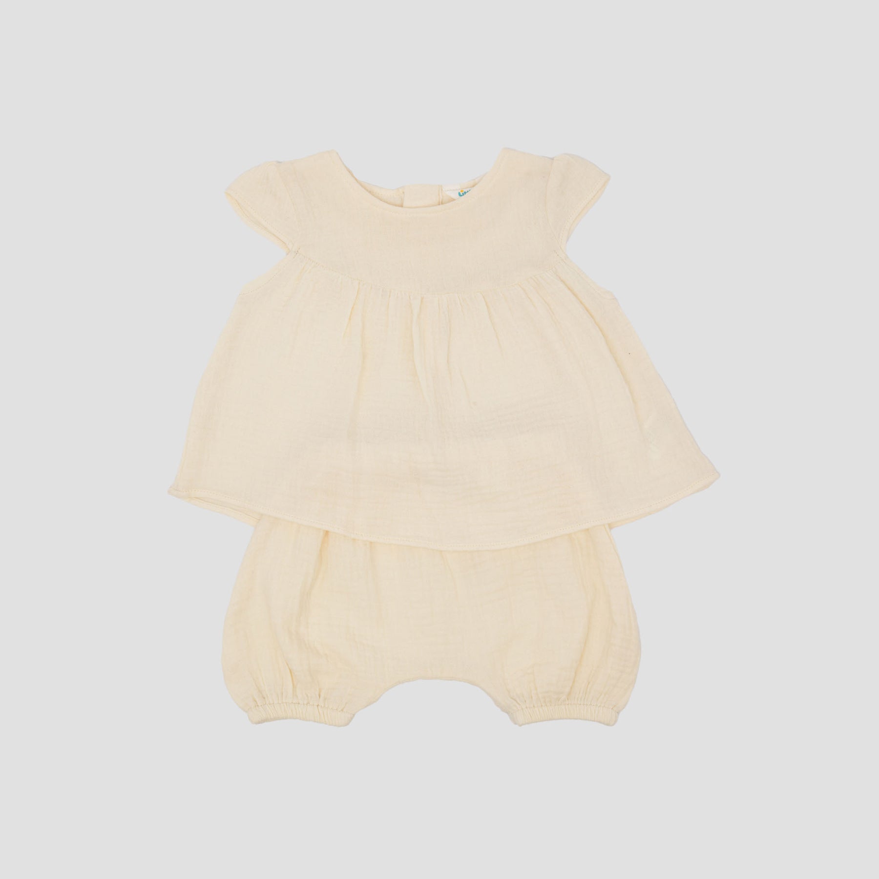 Set pakaian bayi dengan design yang simple dan casual, cocok untuk digunakan anak pada moment berharga mereka untuk menunjang penampilan anak menjadi lebih menawan. Model yang simple mudah untuk dipadankan dengan bawahan kesukaan mereka dan membuat mereka nyaman dalam beraktifitas sehari-hari.