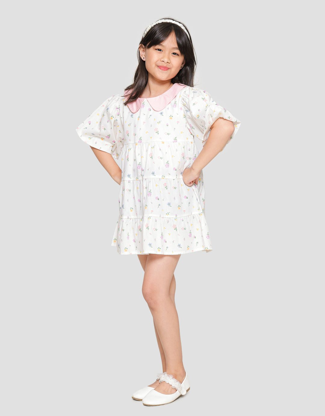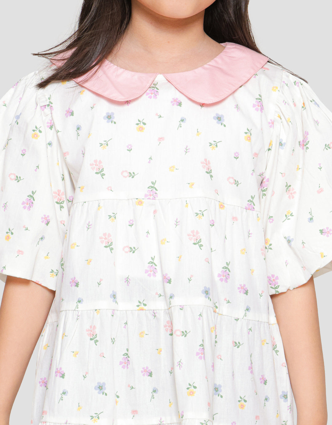 Little M Floral Smock Kerah Midi Dress Anak Perempuan