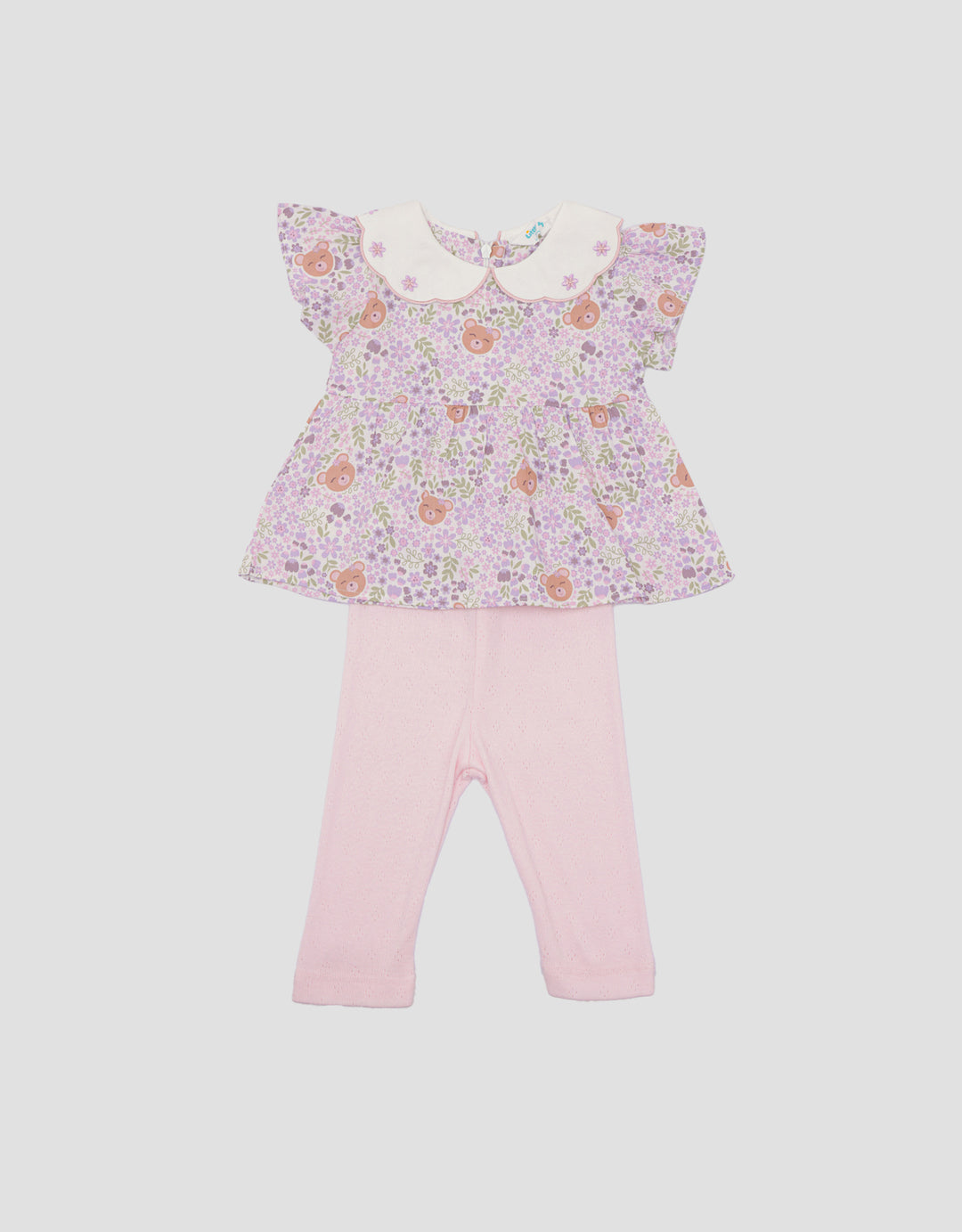 Little M Fullprint Bear Baju Set 2 Pcs Bayi Perempuan