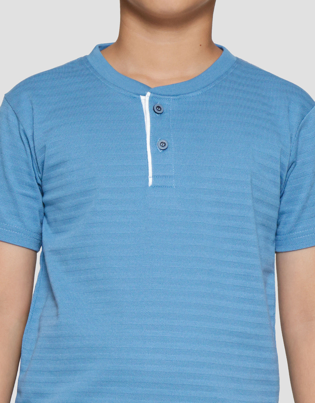 Little M Henley Texture Stripe Print Kaos Anak Laki-laki