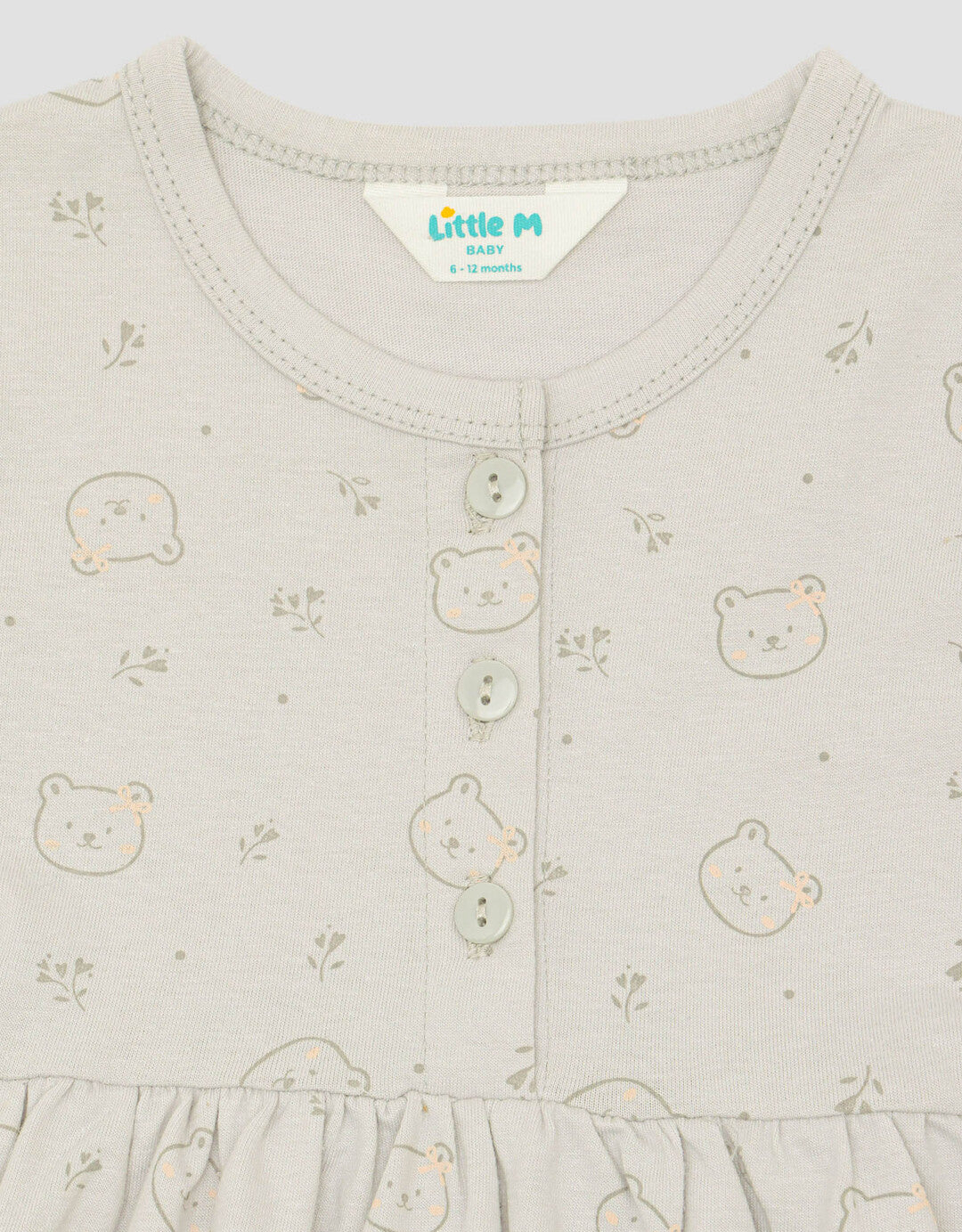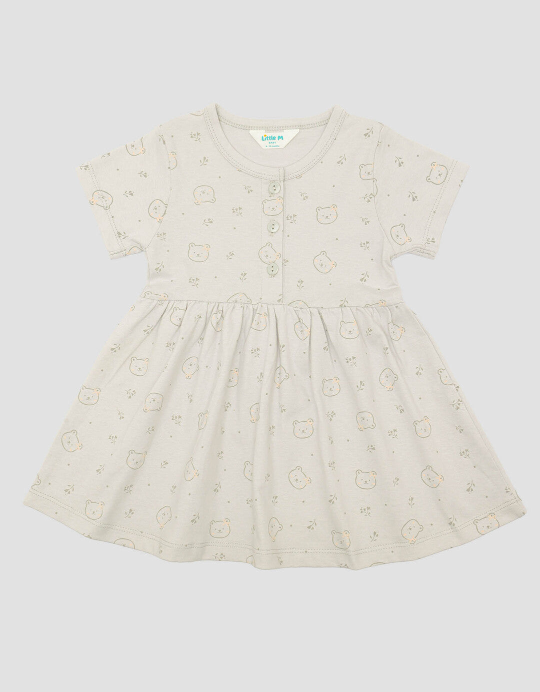 Little M Jersey Fullprint Bear Midi Dress Anak Bayi Perempuan