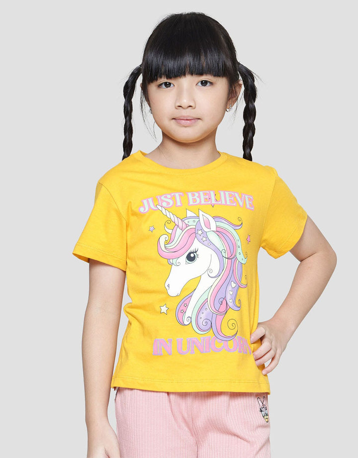 Little M Just Believe In Unicorn Print Kaos Lengan Pendek Anak Perempuan