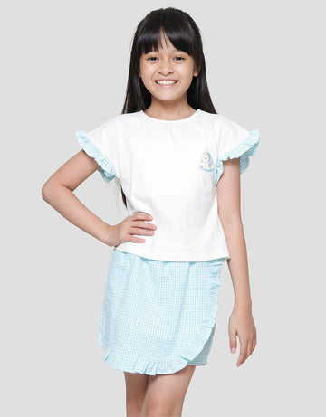Little M Kaos Ruffle Skort Kotak Kancing 2 Baju Set Anak Perempuan