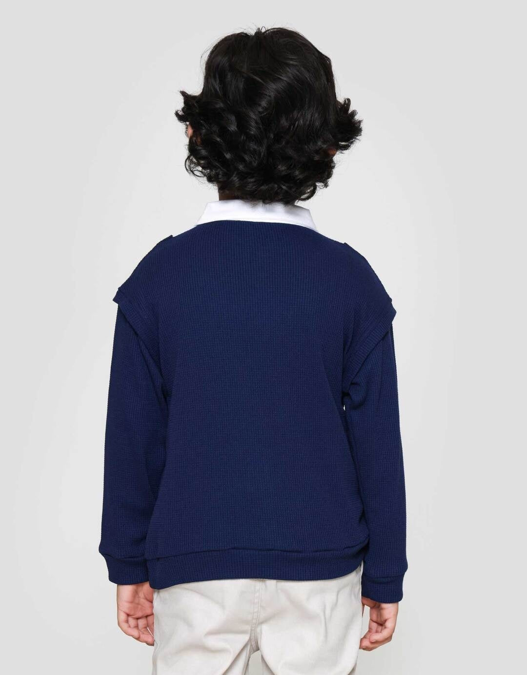 Little M Kerah Texture Wafel Sweater Anak Laki-laki