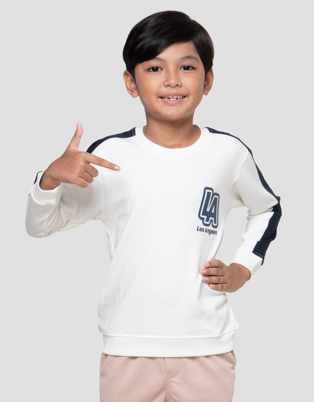 Sweater anak laki-laki dengan design yang simple dan casual, cocok untuk digunakan anak pada moment keseharian mereka untuk menunjang penampilan anak menjadi lebih menawan. Model yang simple mudah untuk dipadankan dengan bawahan kesukaan mereka dan membuat mereka nyaman dalam beraktifitas sehari-hari.