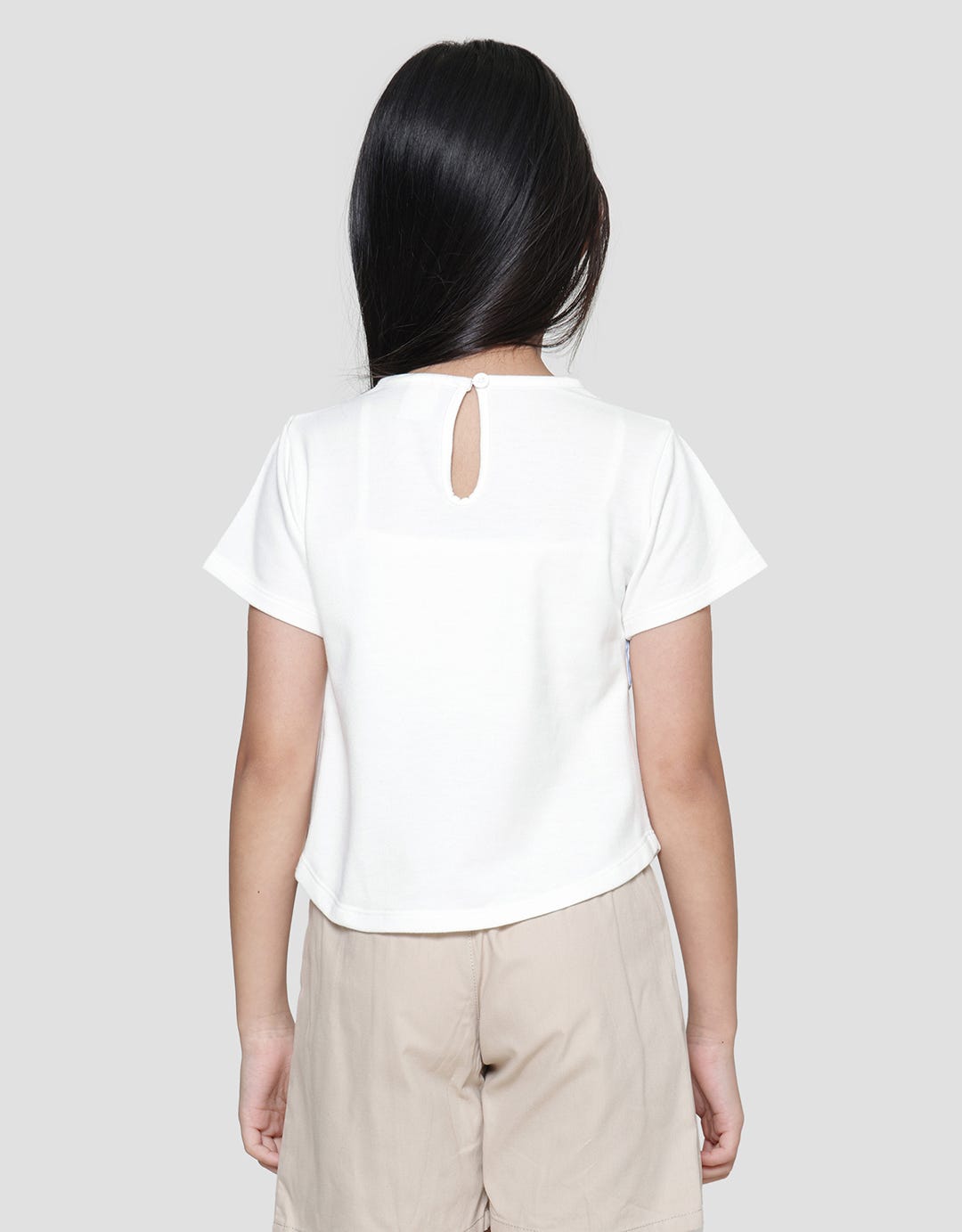 Little M Kombinasi Woven Pita Kucing Kaos Anak Perempuan