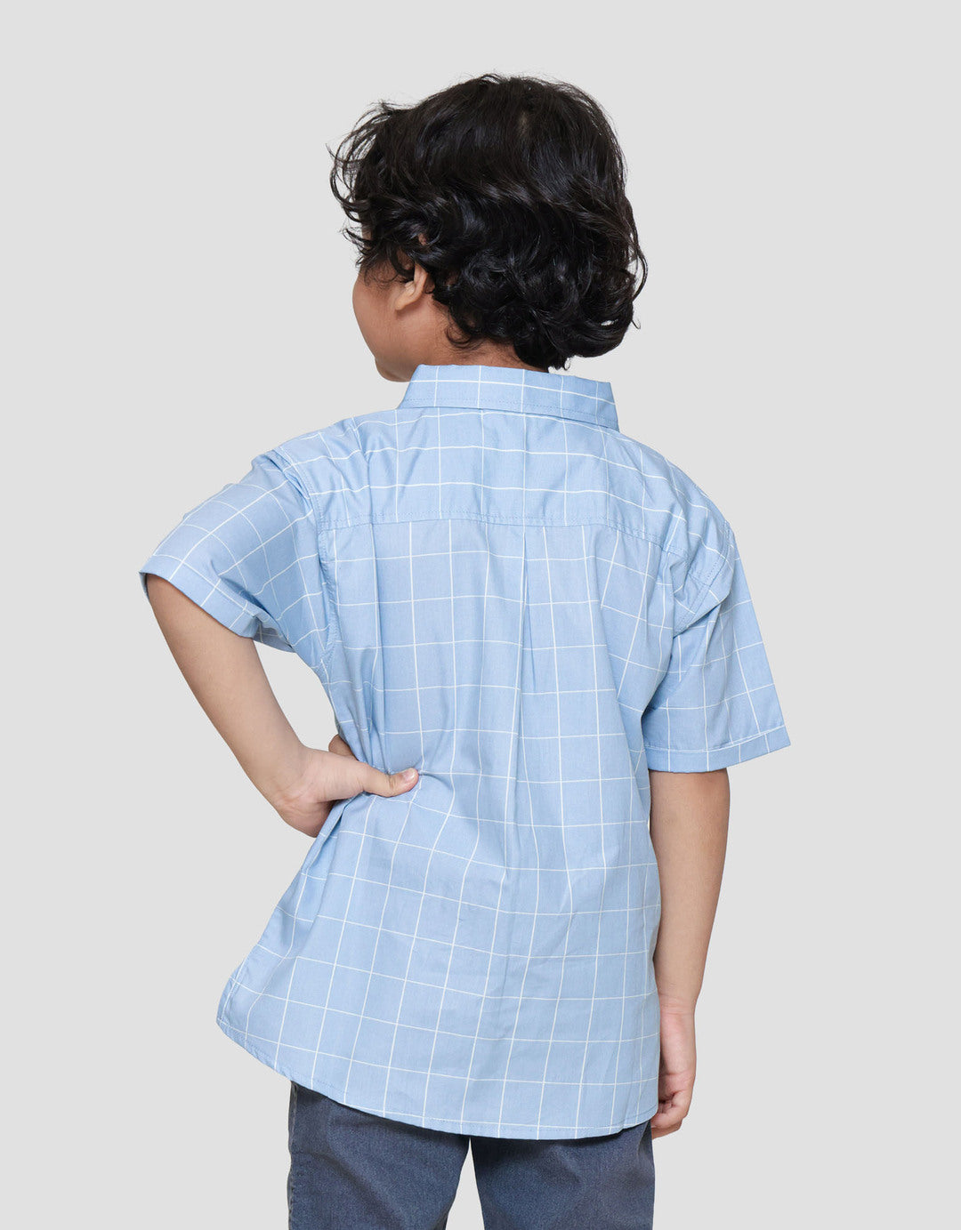 Little M Kotak Blue Mm Wash Kemeja Anak Laki-laki