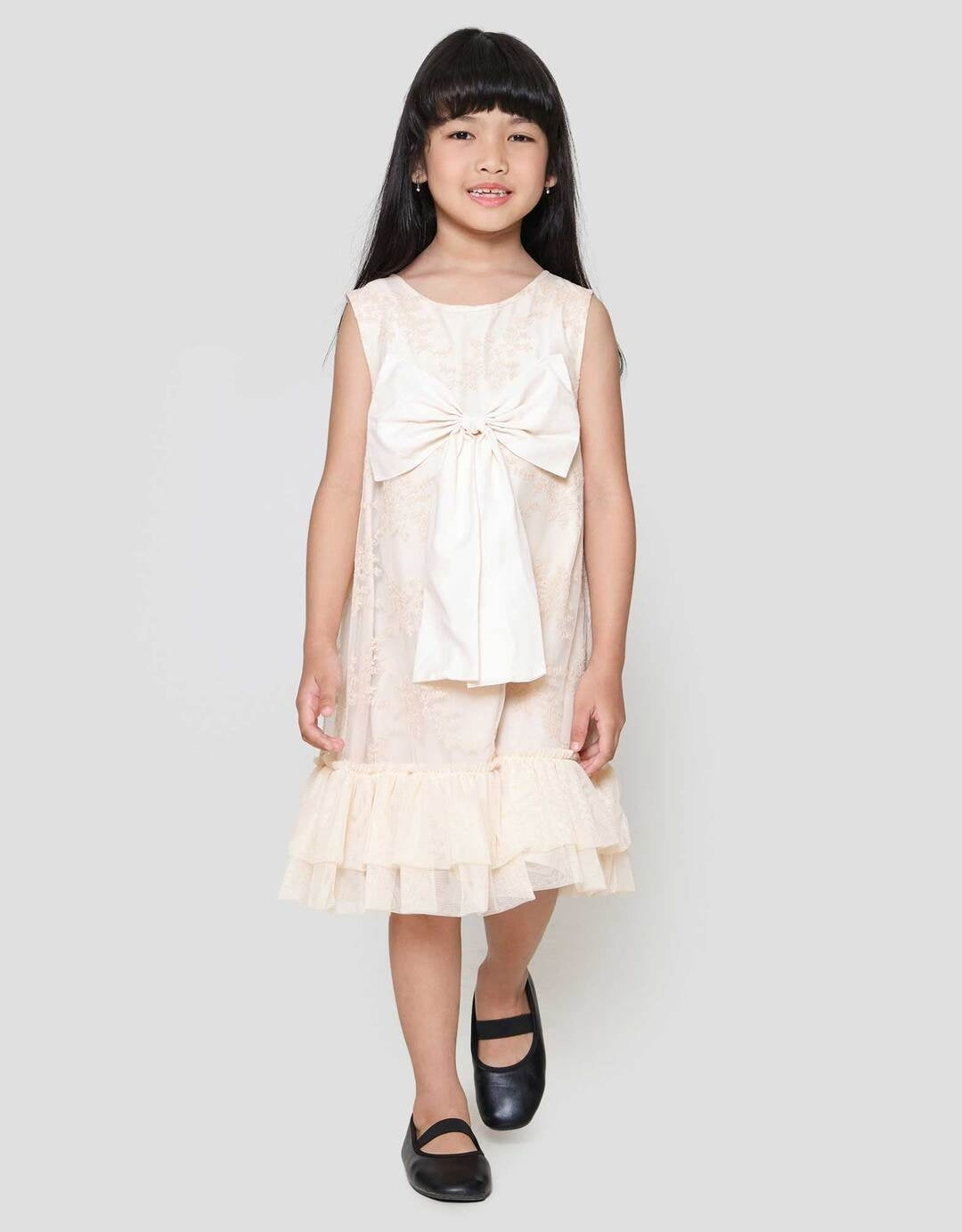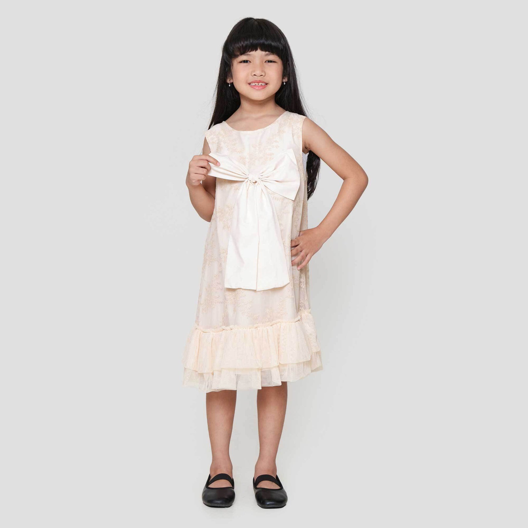 Little M Lace Flower With Bow Dress Anak Perempuan