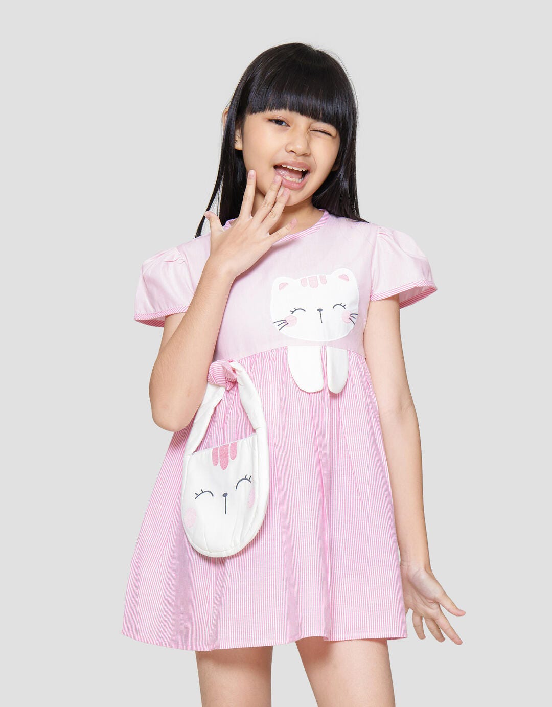 Little M Lengan Balon Tas Kucing Midi Dress Anak Perempuan