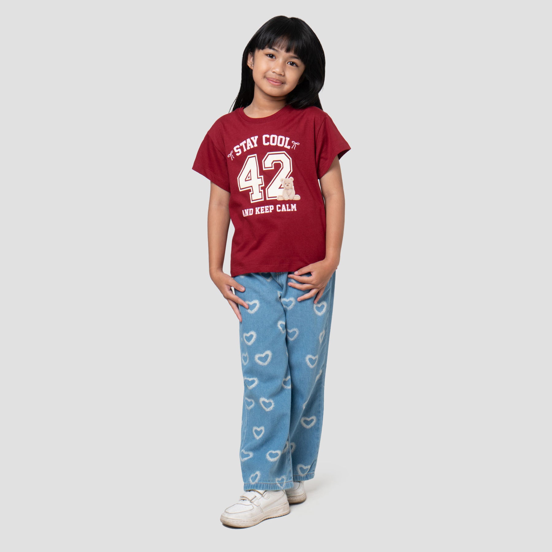 Kaos anak perempuan dengan model yang simple dan casual, cocok untuk dijadikan outifit keseharian saat anak beraktifitas. Bahan yang berkualitas akan nyaman saat digunakan sepanjang hari.