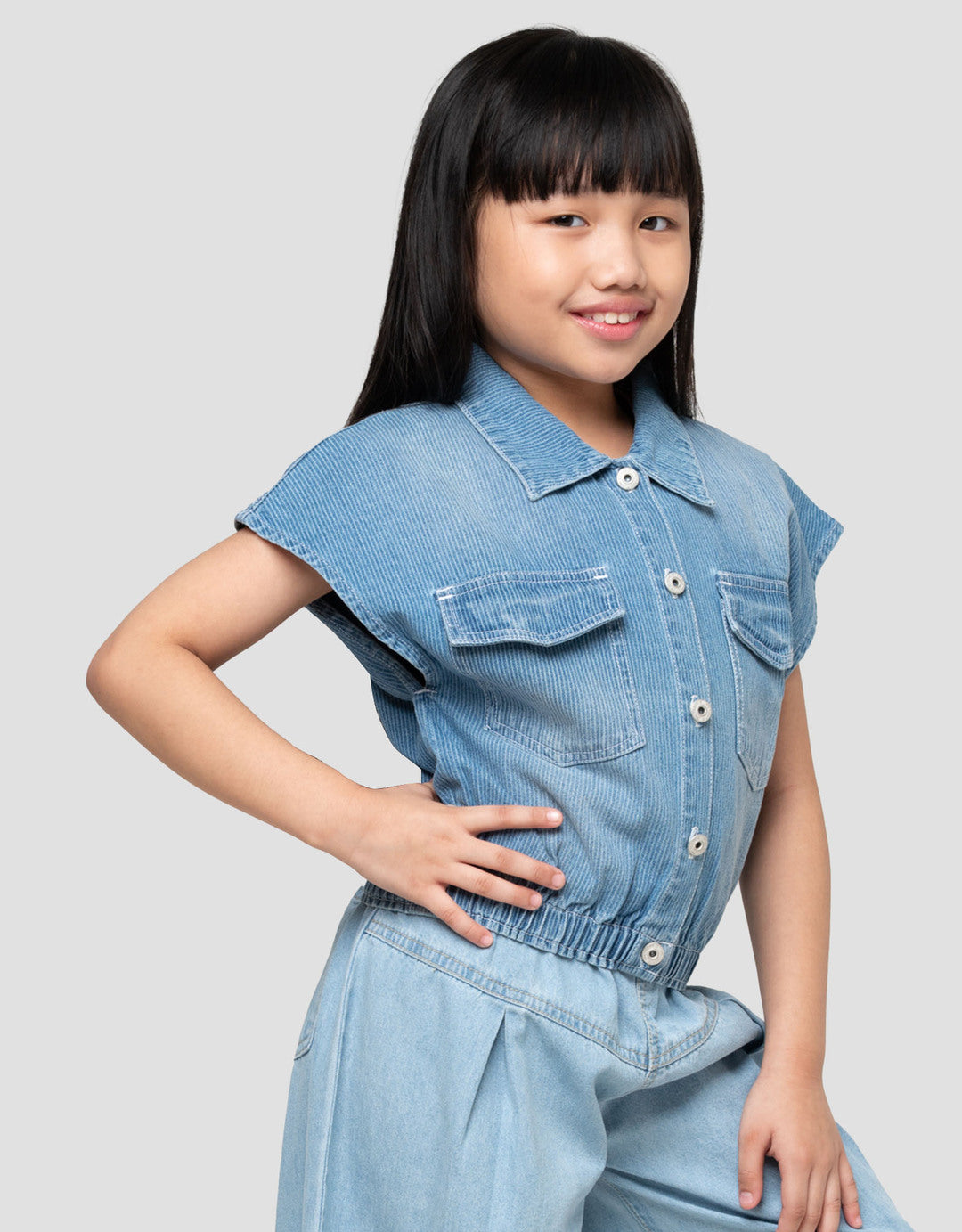 Little M Outer Stripe Jaket Denim Anak Perempuan