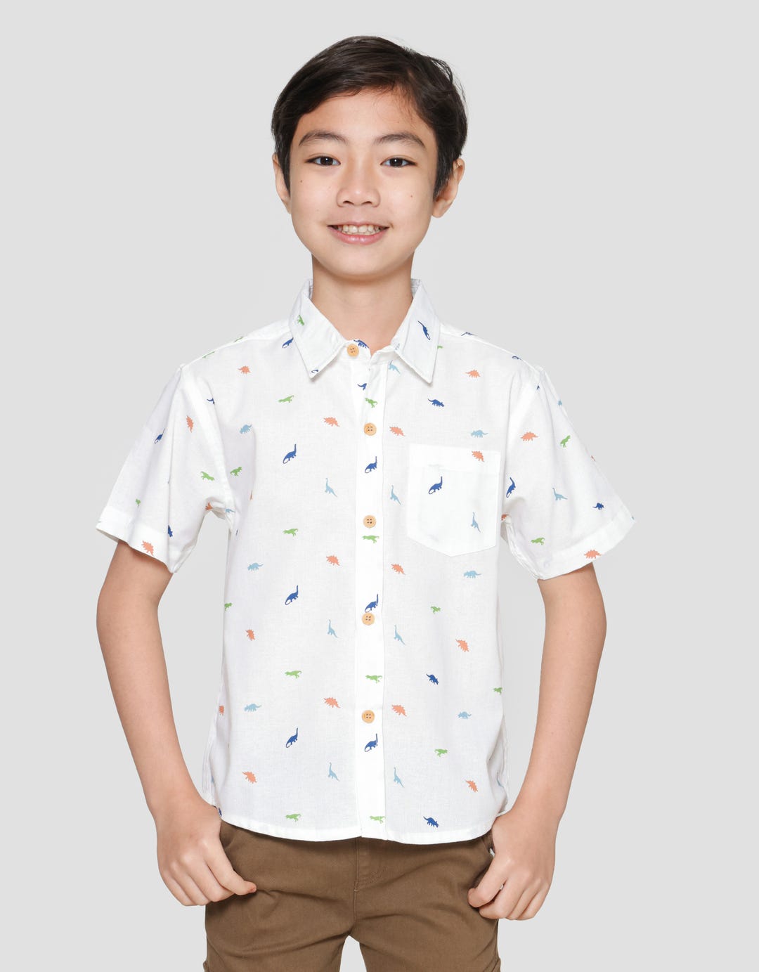 Little M Oxford Dino Kemeja Lengan Pendek Anak Laki-laki