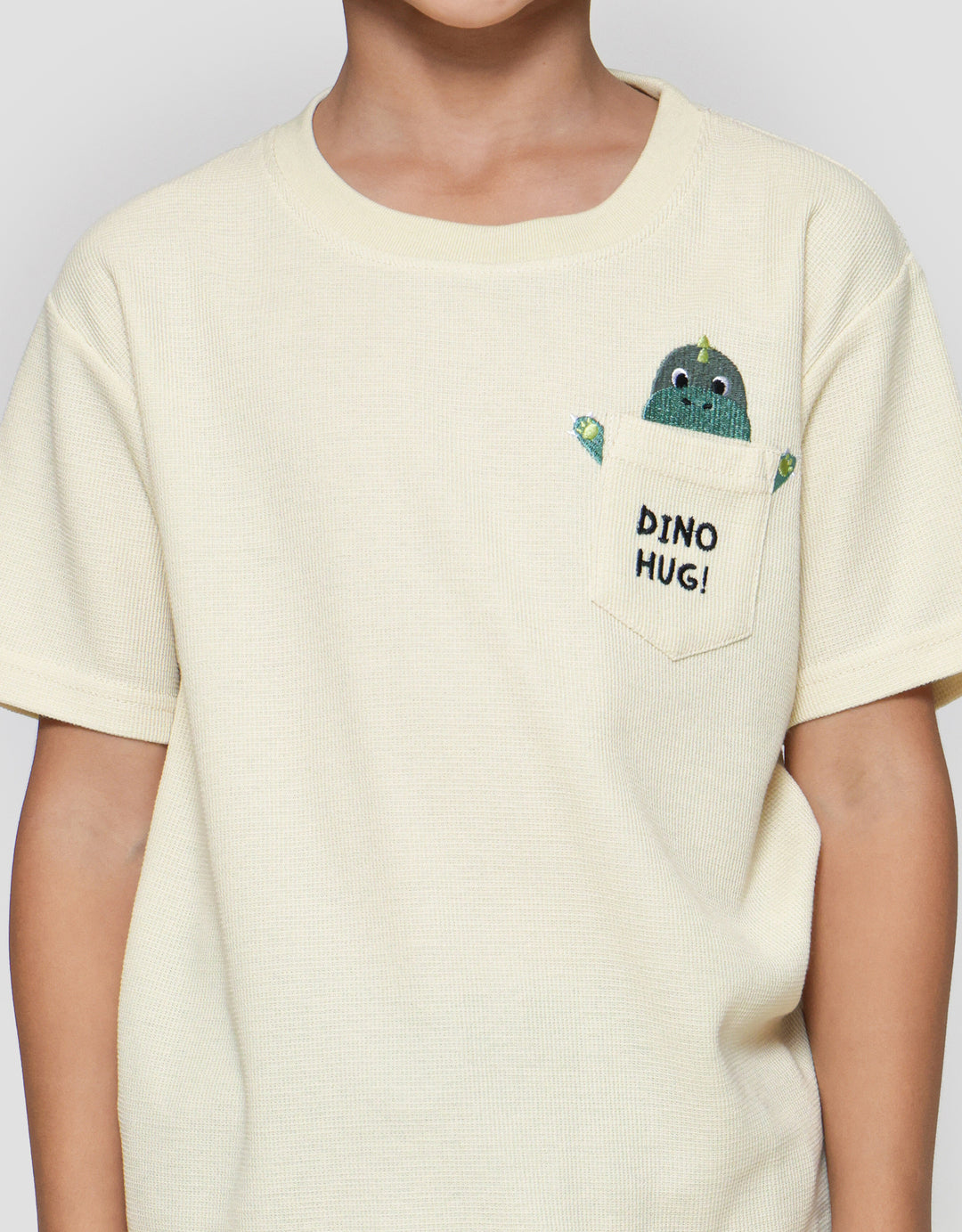 Little M Pocket Crewneck Dino Print Kaos Lengan Pendek Anak Laki-laki
