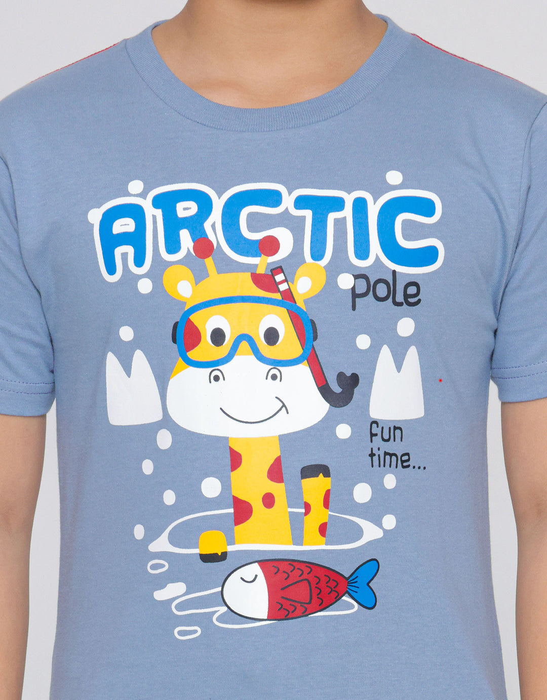Little M Print Animal Giraffe Kaos Lengan Pendek Anak Laki-laki
