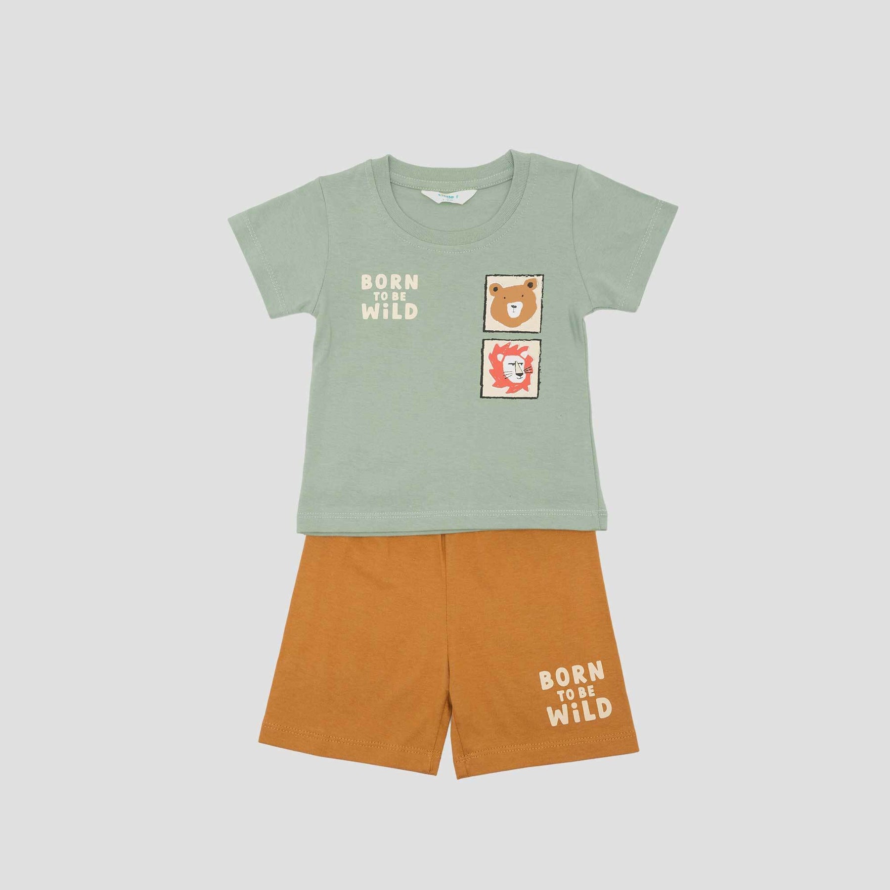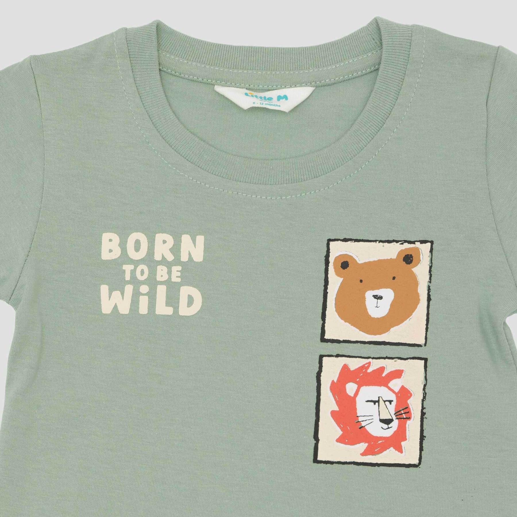 Little M Print Bear & Lion Sketch Pakaian Setelan Bayi