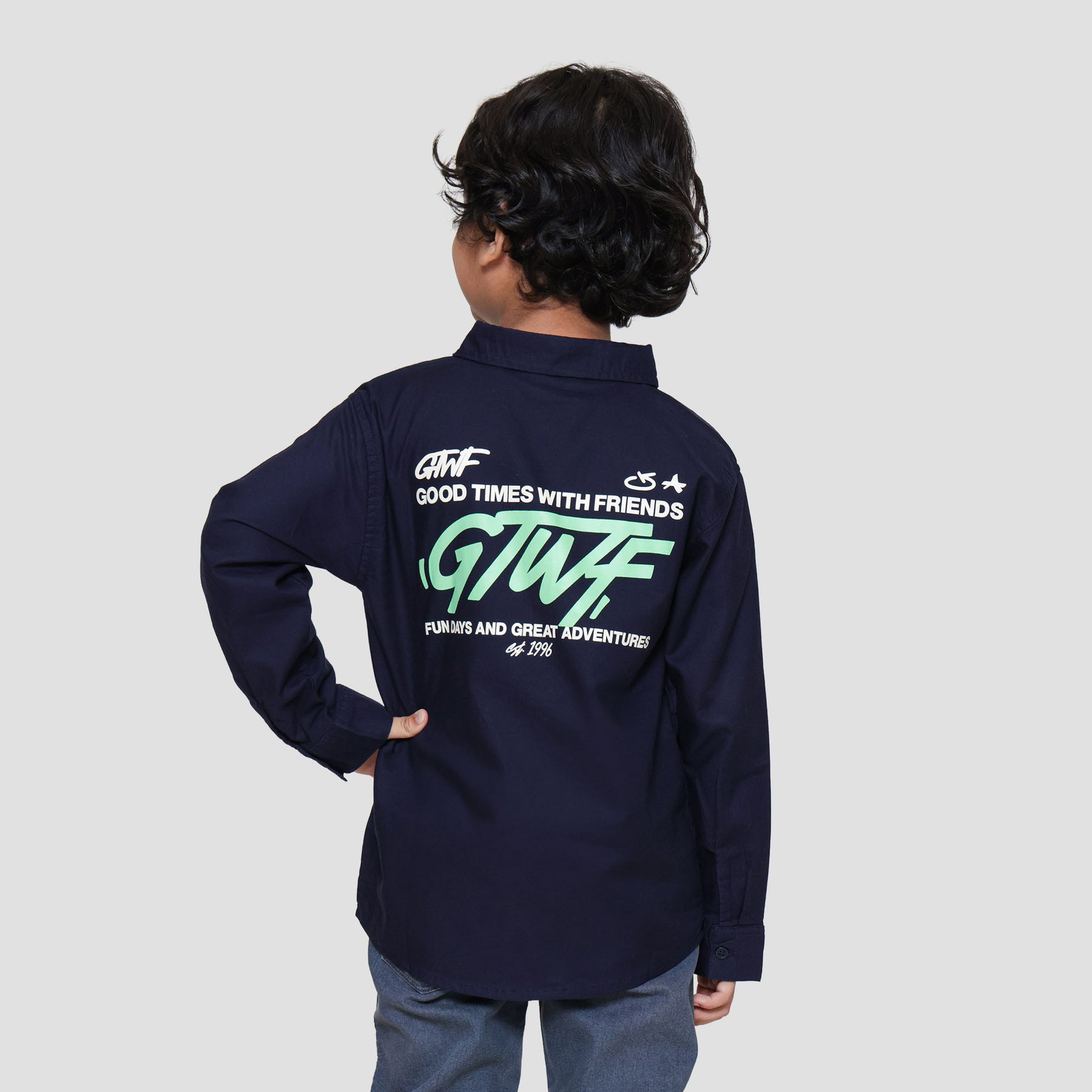Little M Print Blk Wording Kemeja Anak Laki-laki