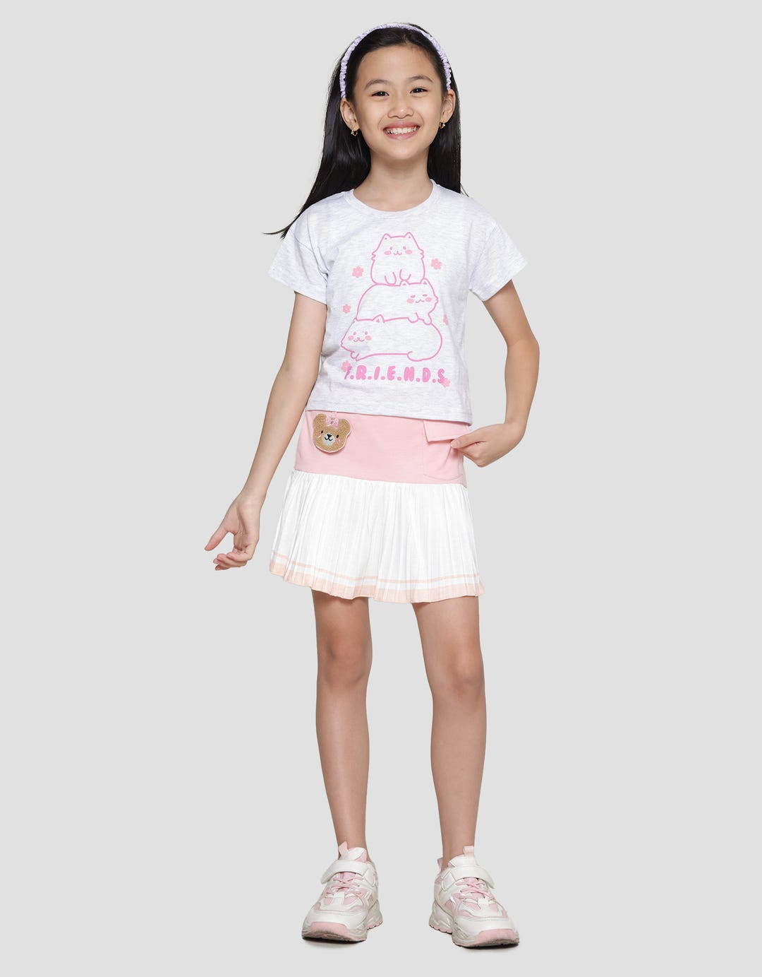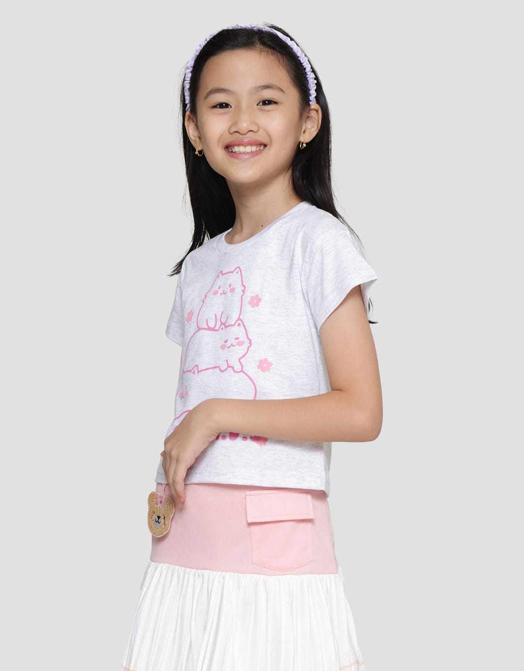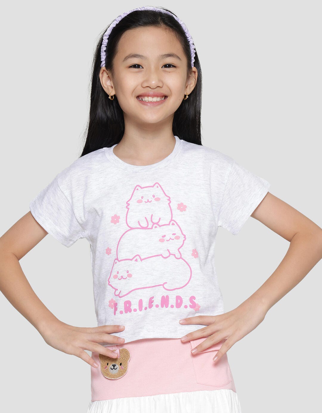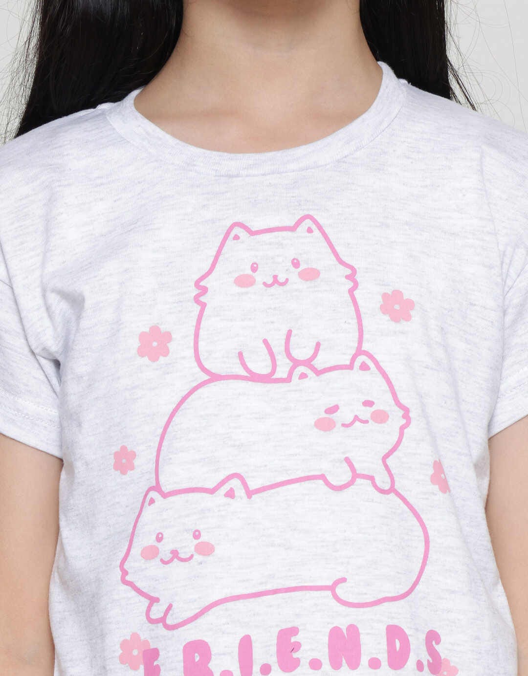 Little M Print Cat Friends Kaos Lengan Pendek Anak Perempuan