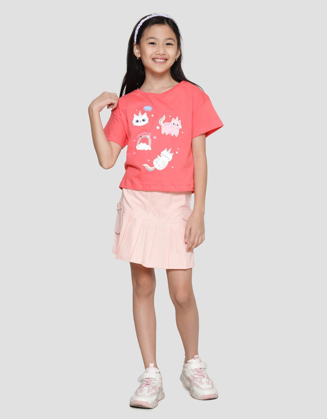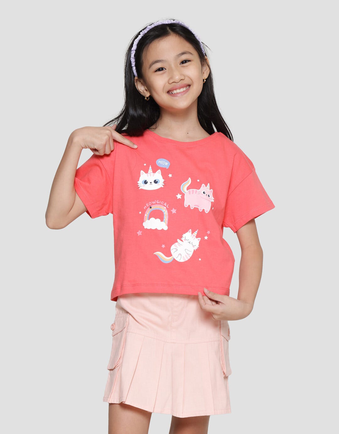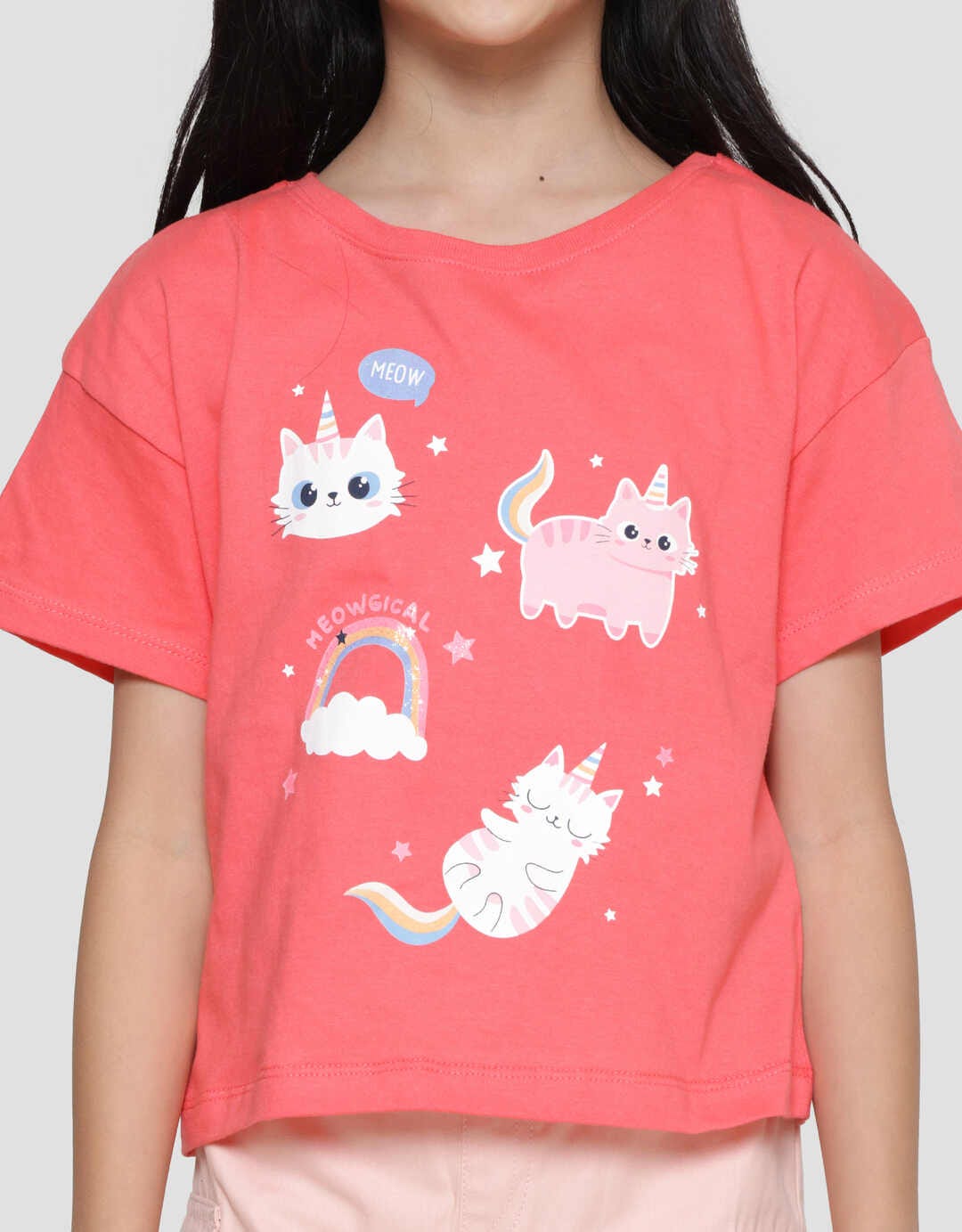 Little M Print Kittycorn Kaos Lengan Pendek Anak Perempuan