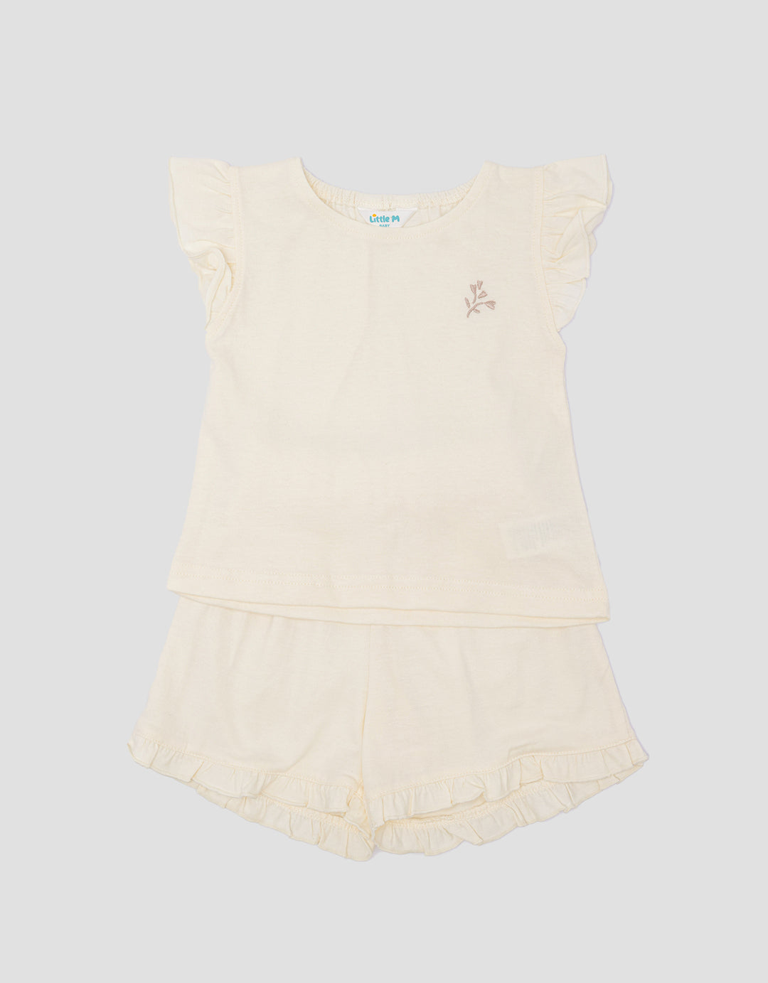 Little M Print Ruffles Embro Flowers Setelan Anak Perempuan