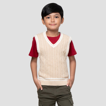 Little M Rajutan Kerah V Vest Rompi Anak Laki-laki
