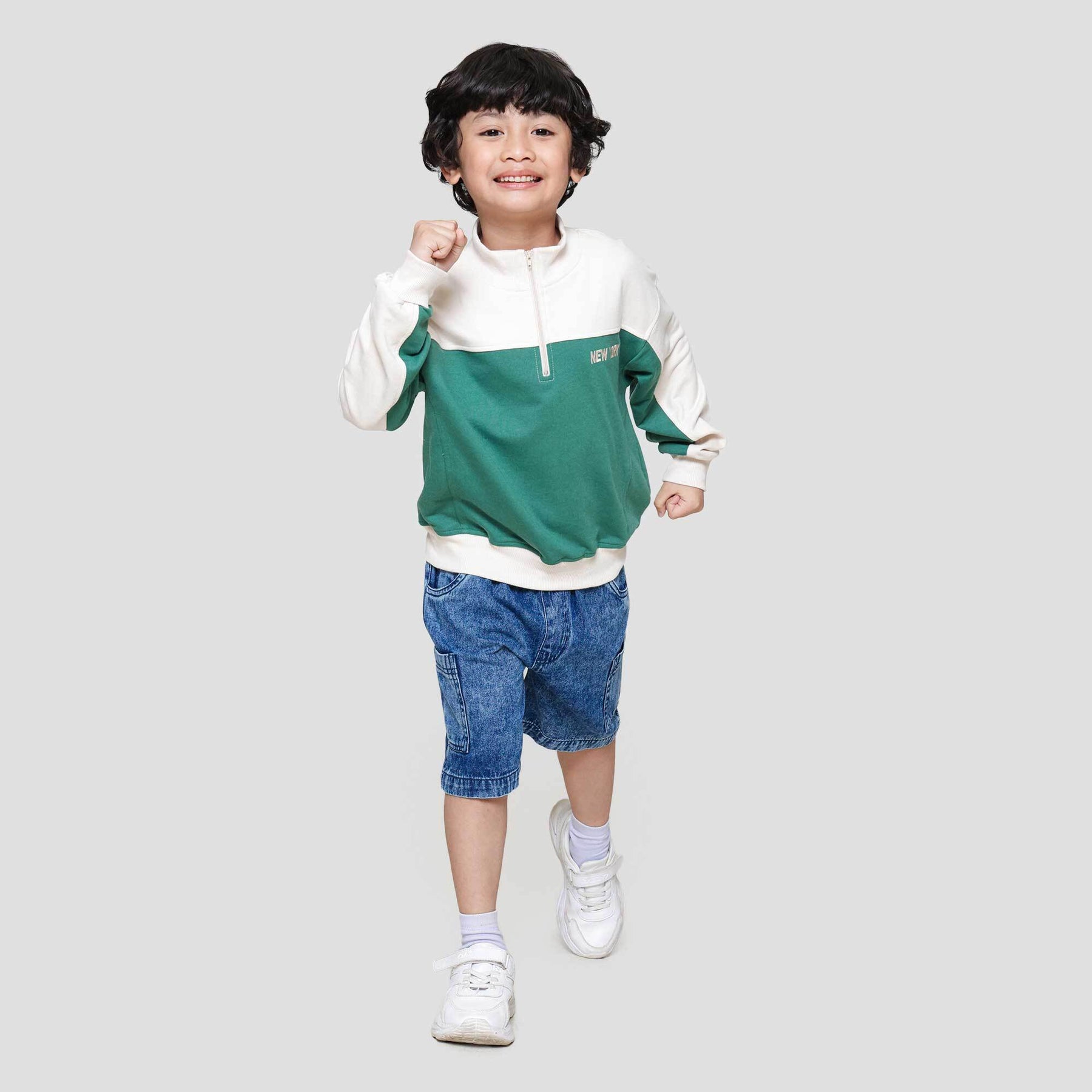 Sweater anak laki-laki dengan design yang simple dan casual, cocok untuk digunakan anak pada moment keseharian mereka untuk menunjang penampilan anak menjadi lebih menawan. Model yang simple mudah untuk dipadankan dengan bawahan kesukaan mereka dan membuat mereka nyaman dalam beraktifitas sehari-hari.