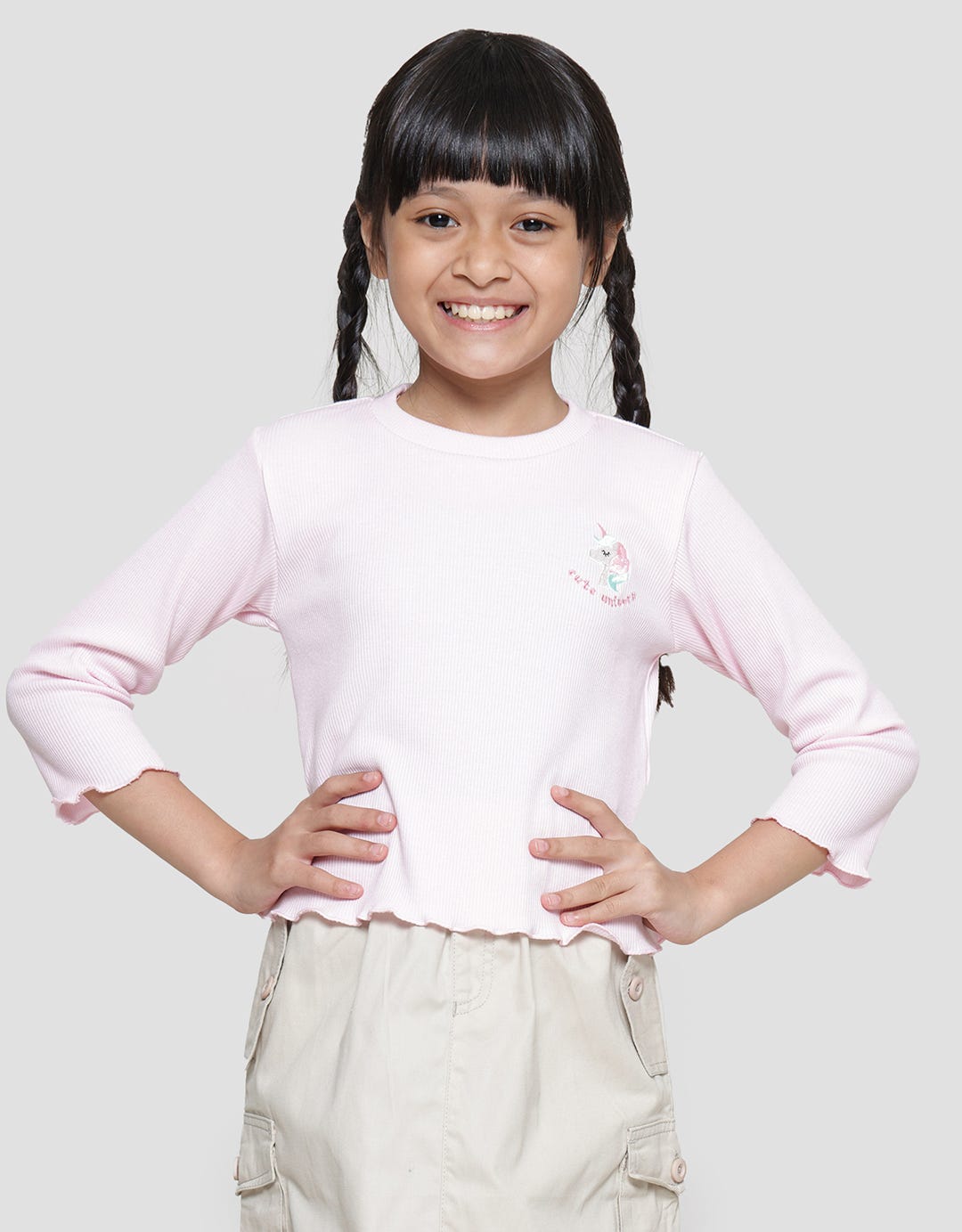 Little M Rib Bordir Unicorn Kaos Lengan Panjang Anak Perempuan