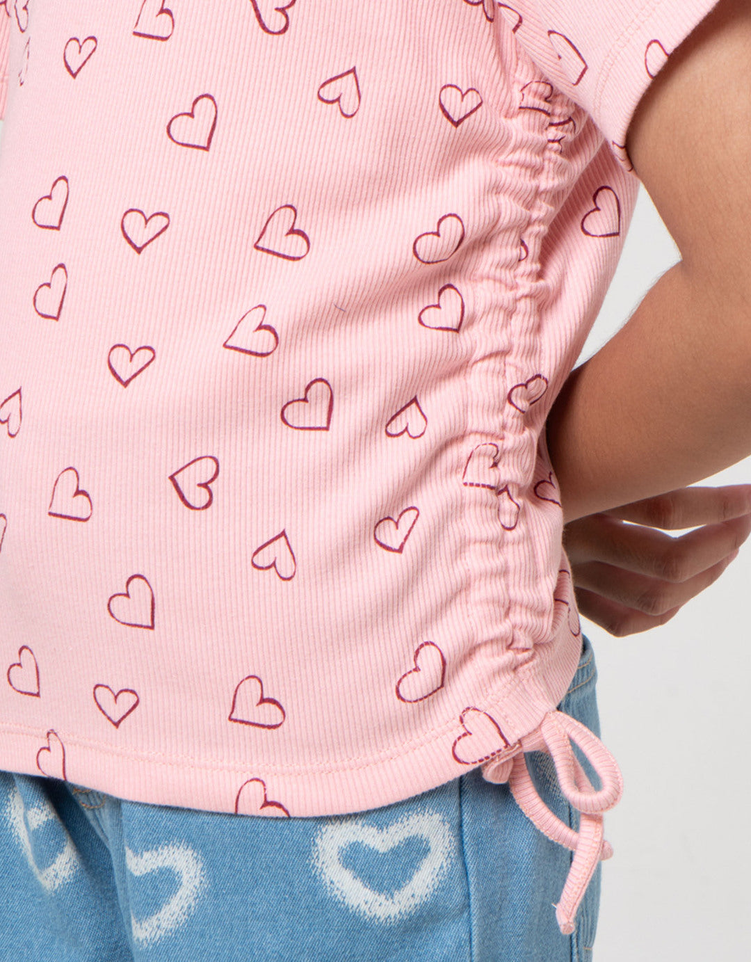 Little M Rib Serut Aop Heart Kaos Anak Perempuan